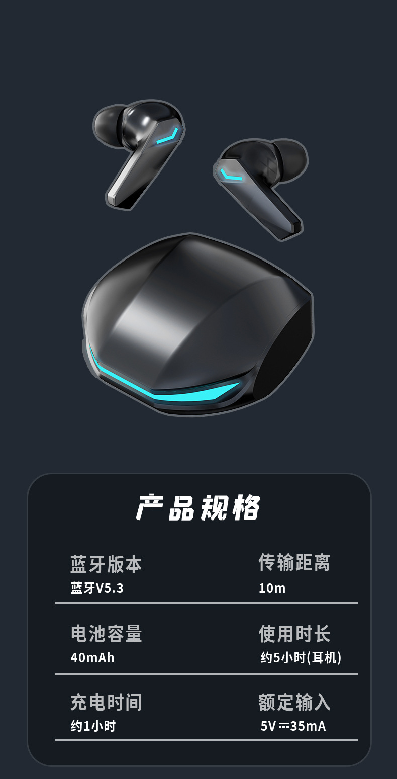 국경 간 인기 e-스포츠 게임 Bluetooth 무선 헤드셋 TWS 이어폰 형 소음 감소 초장기 배터리 수명 0 지연 호흡 램프스토어 가기