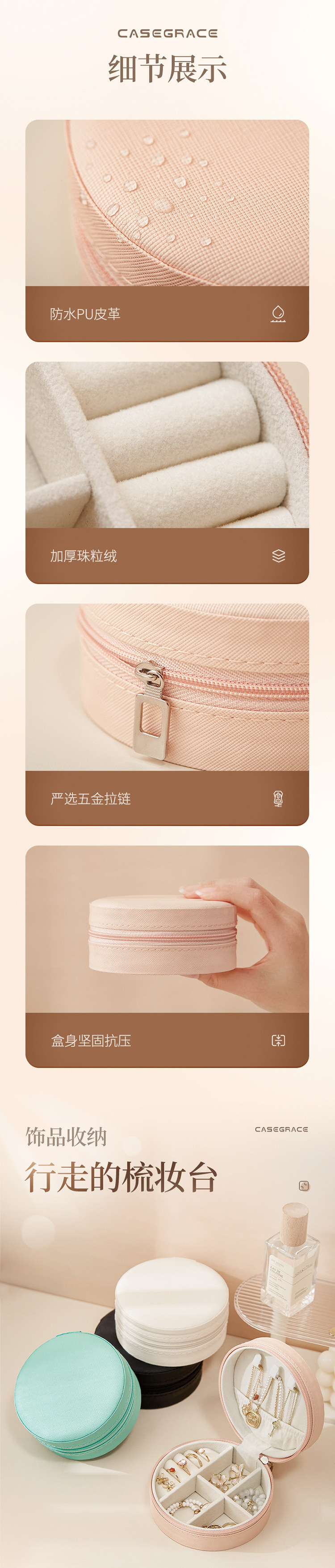 휴대용 보석 상자 둥근 휴대용 운반 목걸이 귀걸이 반지 보관 상자 절묘한 하이 엔드