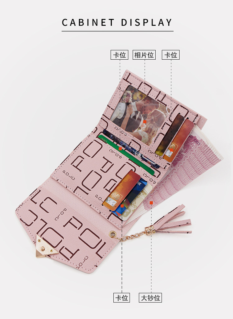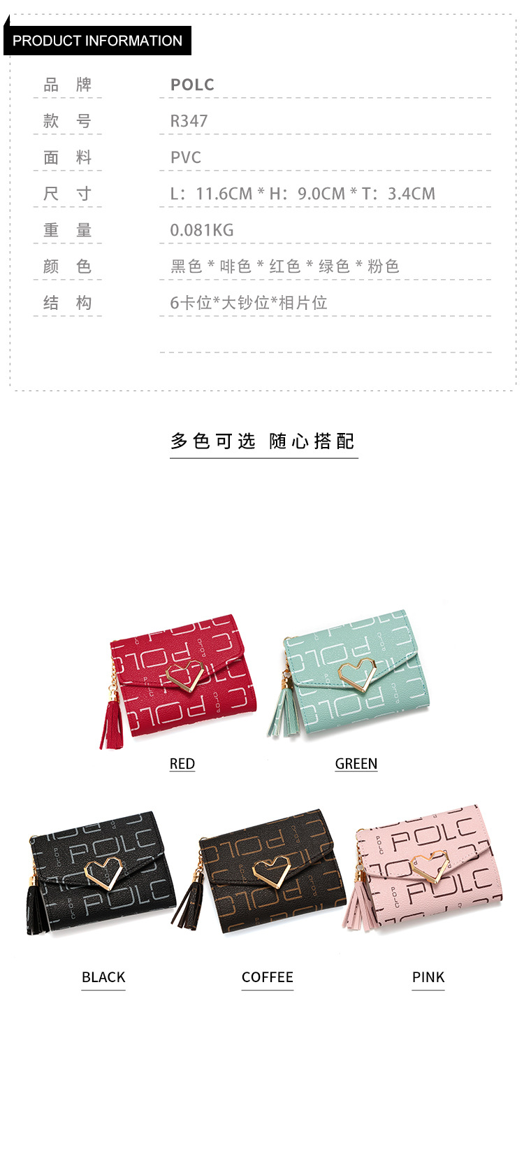 POLC 여성 동전 지갑 신선하고 독특한 인쇄 지갑 유행 여성의 작은 3 배 짧은 지갑 보관 가방
