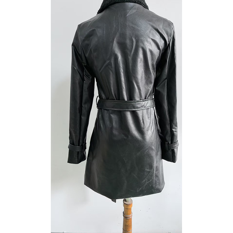 국경 간 대외 무역 여성 코트 영국식 두꺼운 모피 칼라 중장 가죽 오토바이 스타일 가죽 자켓 여성 코트스토어 가기