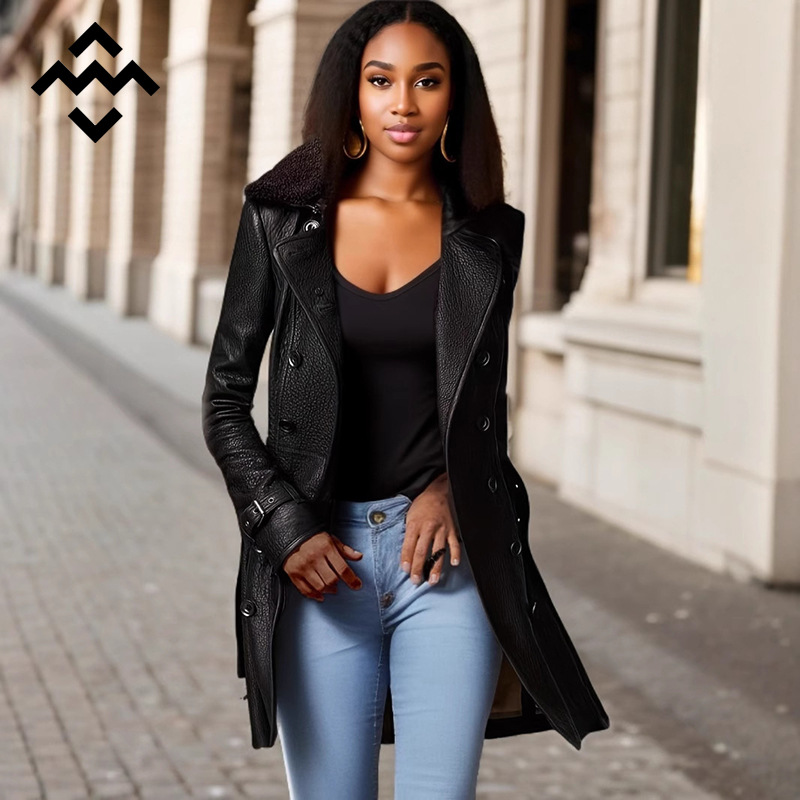 국경 간 대외 무역 여성 코트 영국식 두꺼운 모피 칼라 중장 가죽 오토바이 스타일 가죽 자켓 여성 코트