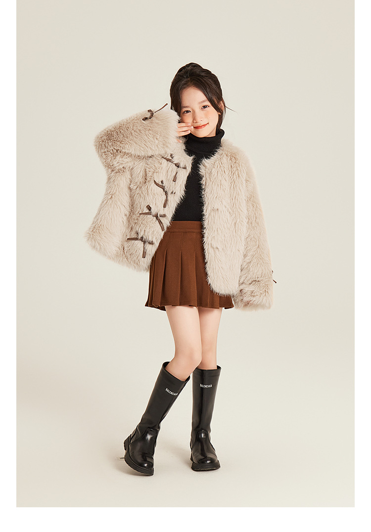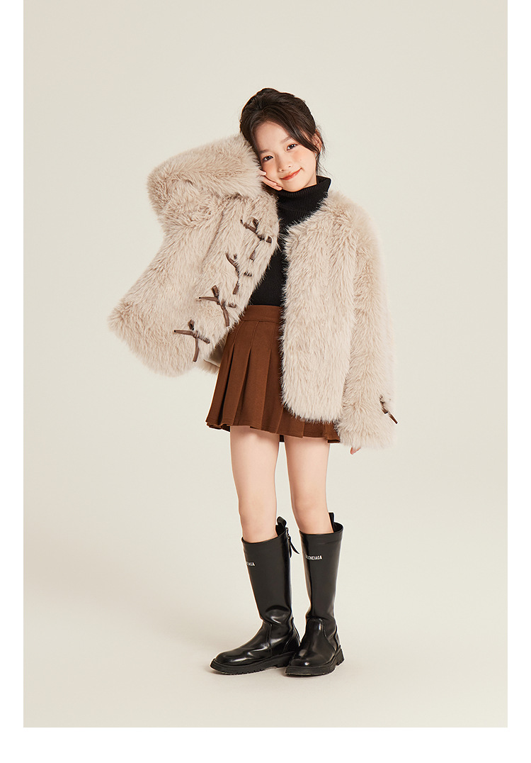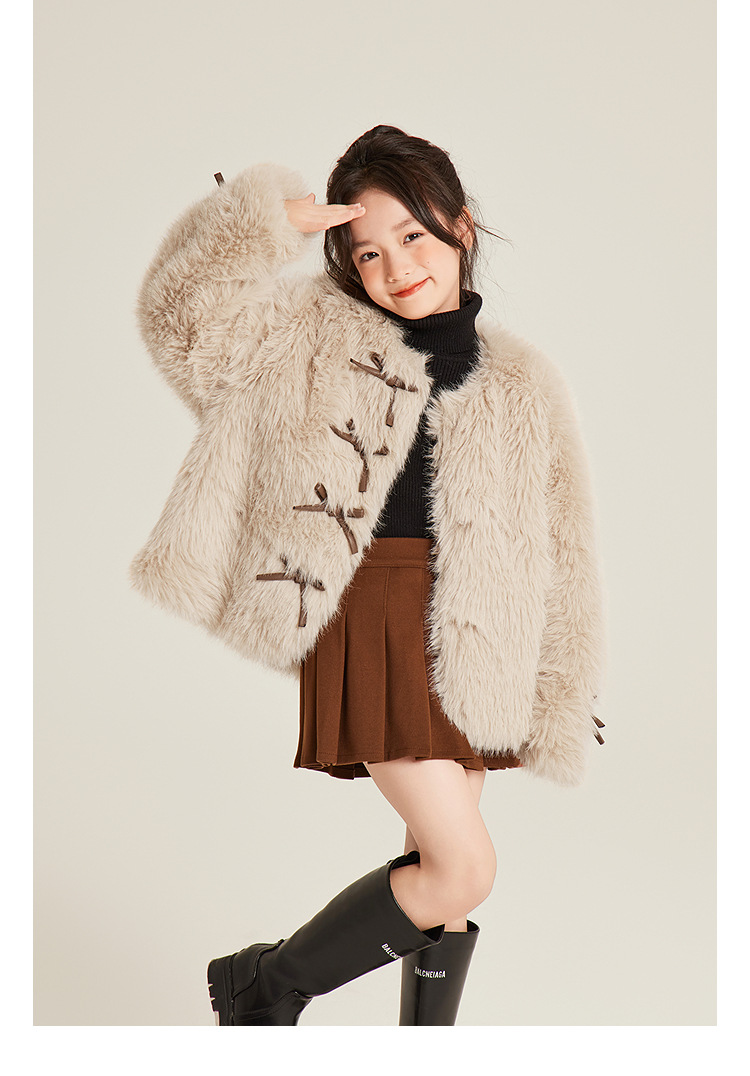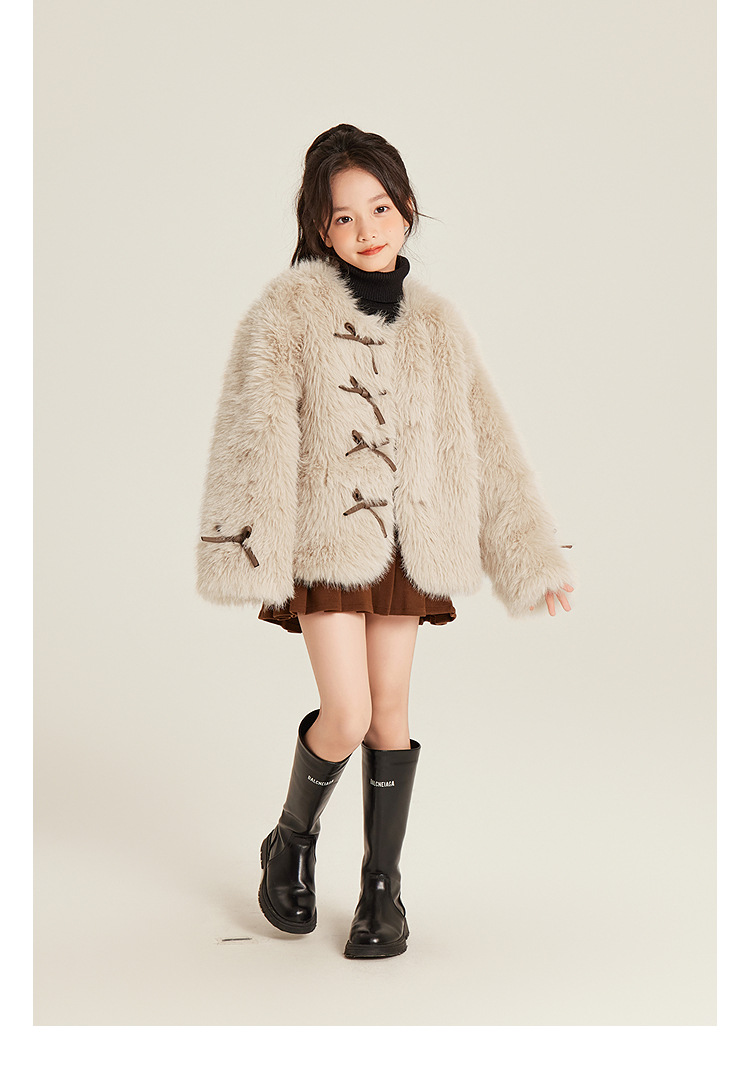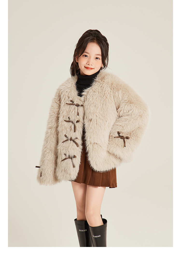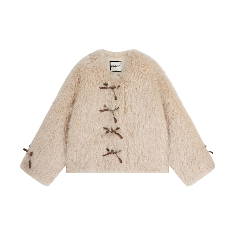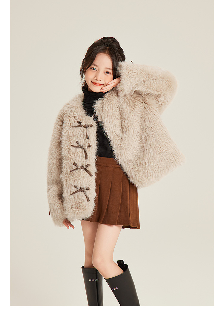 Amybaby Girls 'Top Winter 2024 새로운 도착 유행 복고풍 골드 스타일 활 짧은 코트스토어 가기