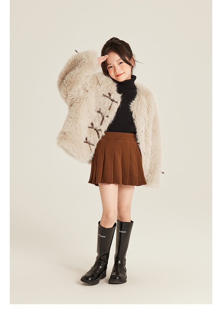 Amybaby Girls 'Top Winter 2024 새로운 도착 유행 복고풍 골드 스타일 활 짧은 코트