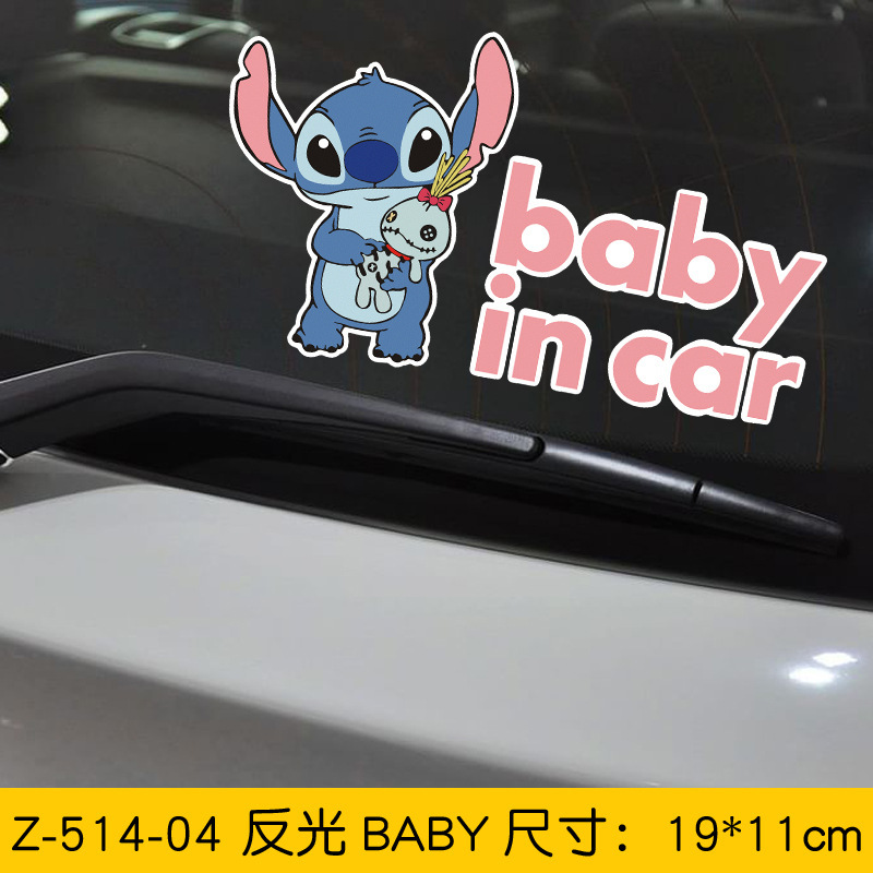반사 만화 스타 아기 스티치 초보 아기 아기 재미있는 커버 스크래치 전기 오토바이 스티커