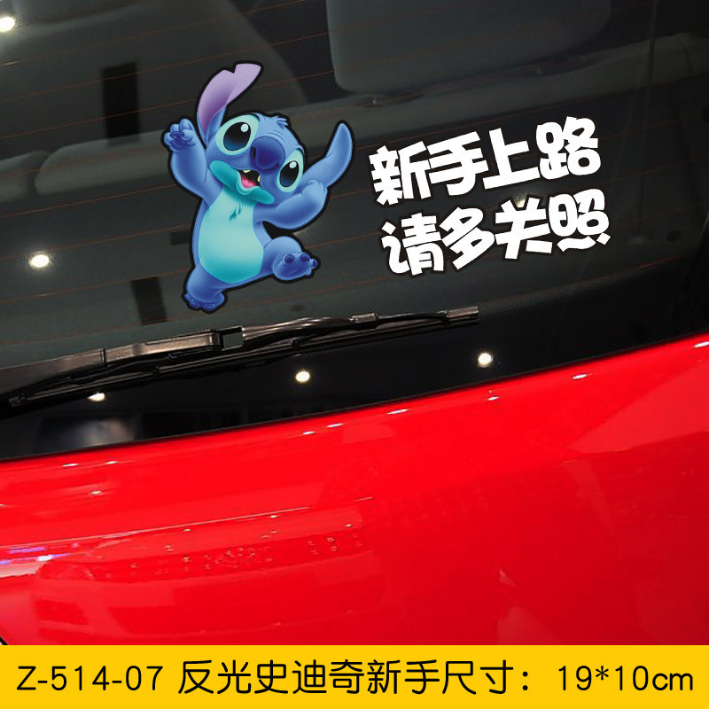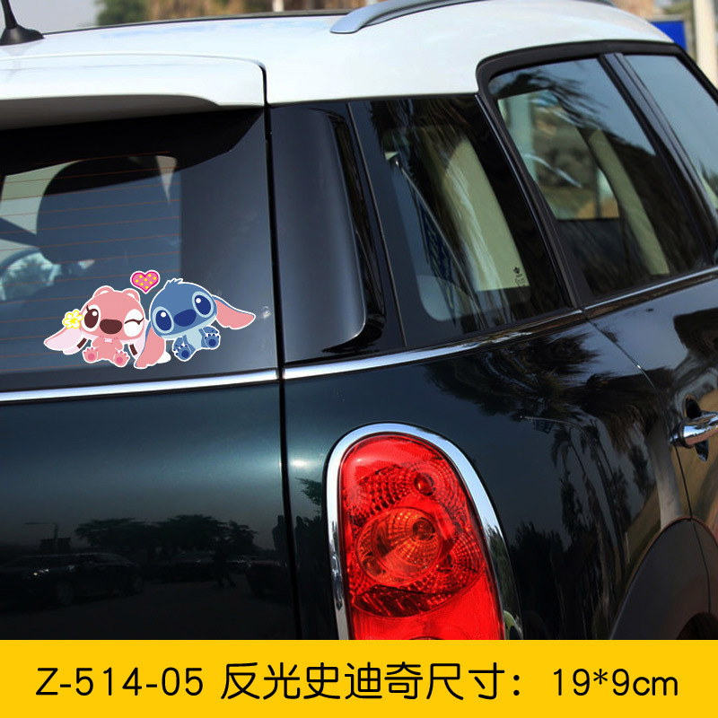 반사 만화 스타 아기 스티치 초보 아기 아기 재미있는 커버 스크래치 전기 오토바이 스티커스토어 가기