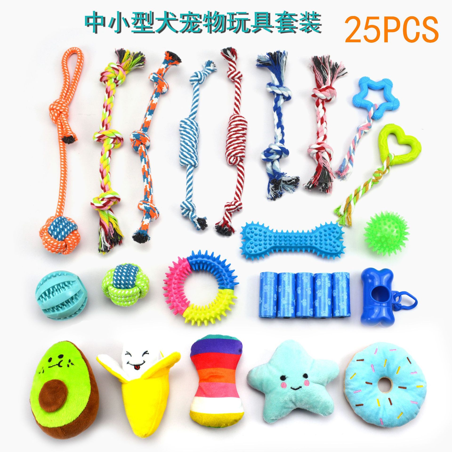 아마존 애완 동물 용품 개 면 로프 장난감 어금니 청소 애완 동물 장난감 세트 중소 개 장난감