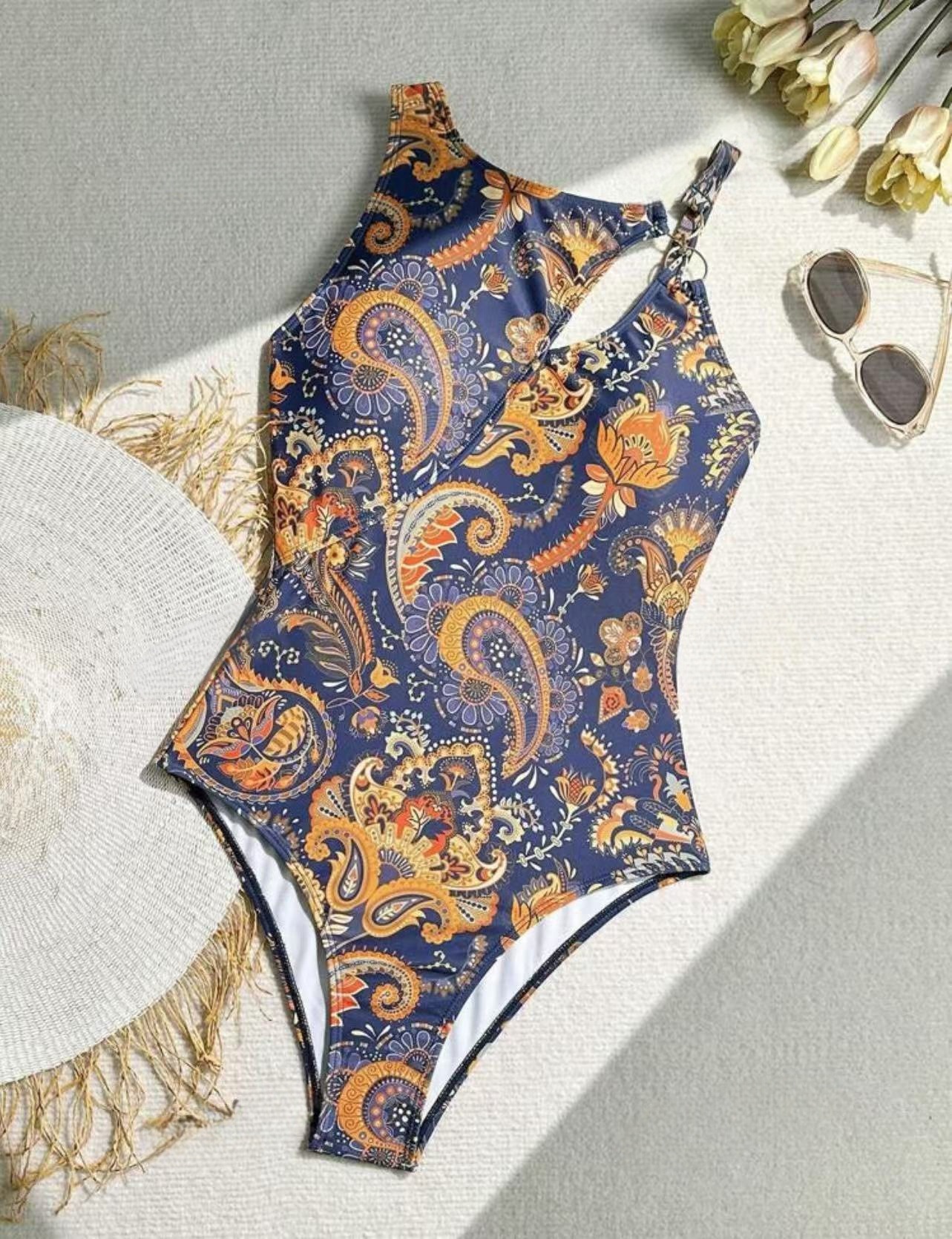2025 유럽과 미국의 국경 간 새로운 대외 무역 원피스 수영복 여성 유럽과 미국의 V 넥 프린트 원피스 비키니 점프 슈트