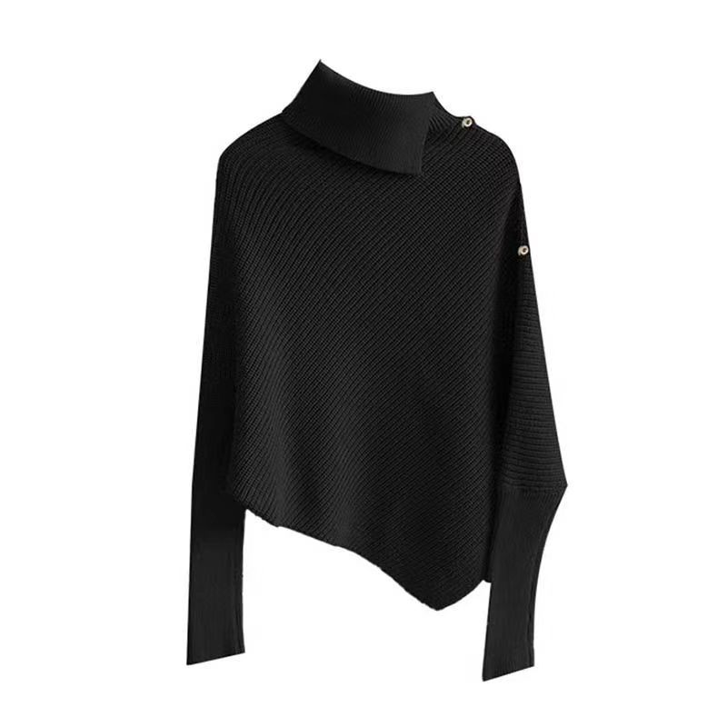 가을과 겨울 새로운 폭발 부드러운 한국 캐주얼 불규칙한 터틀넥 여성의 게으른 스타일 따뜻한 니트 탑