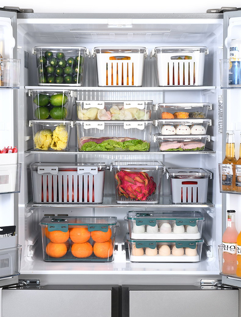• 냉장고 보관함 + 대형 배수 바구니, 투명