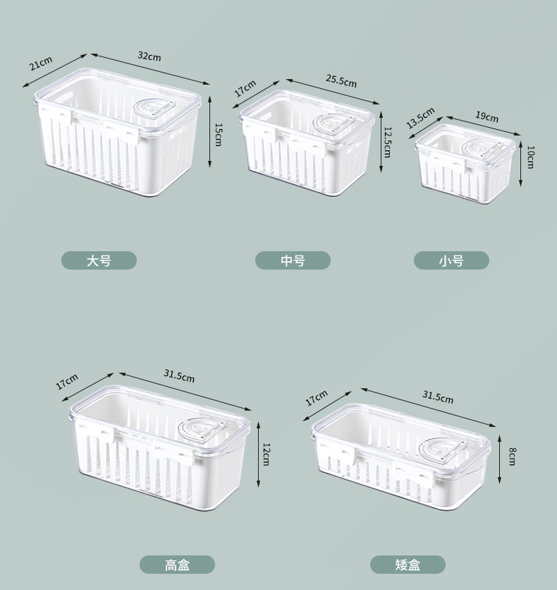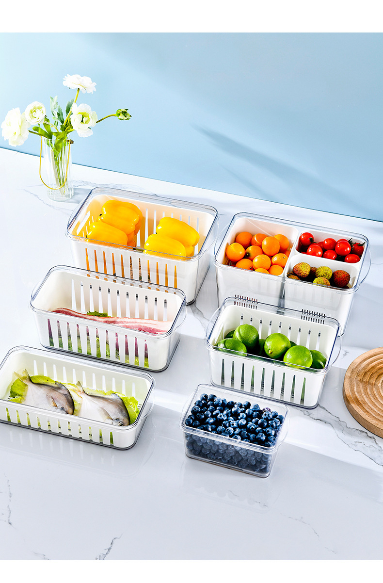 • 냉장고 보관함 + 배수 바구니, 짧은 스타일, 투명