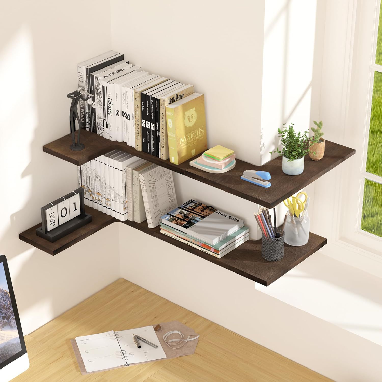 재고 컨트리 스타일 나무 벽 스토리지 랙 벽걸이 형 플로팅 파티션 솔리드 우드 코너 스토리지 랙