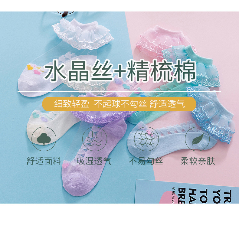 소녀 양말 여름 얇은 소녀 어린이 레이스 공주 양말 여름 메쉬 통기성 보트 양말스토어 가기