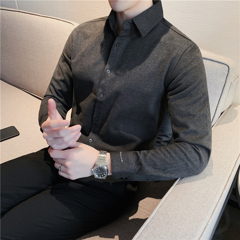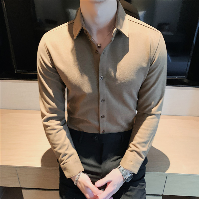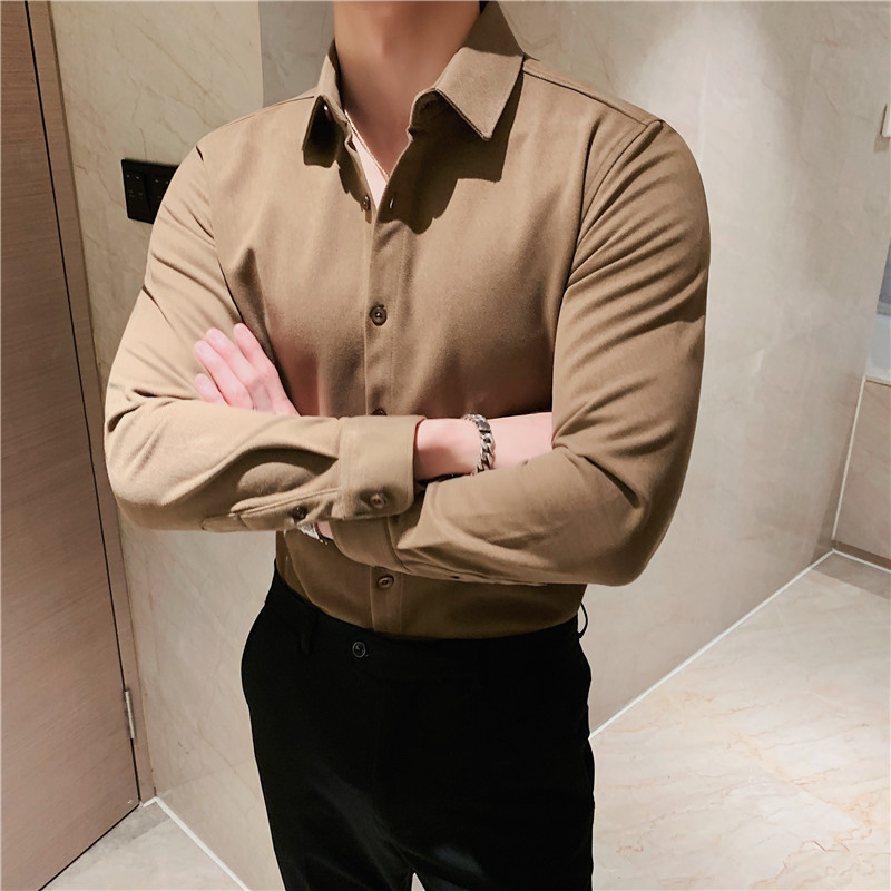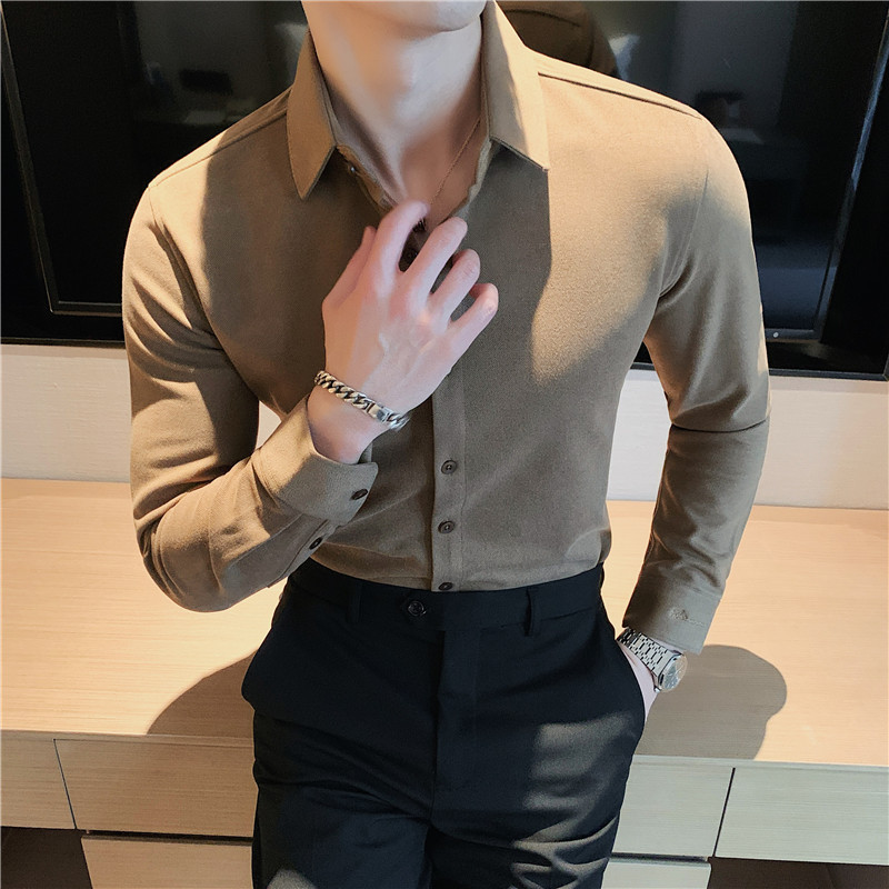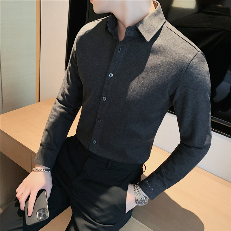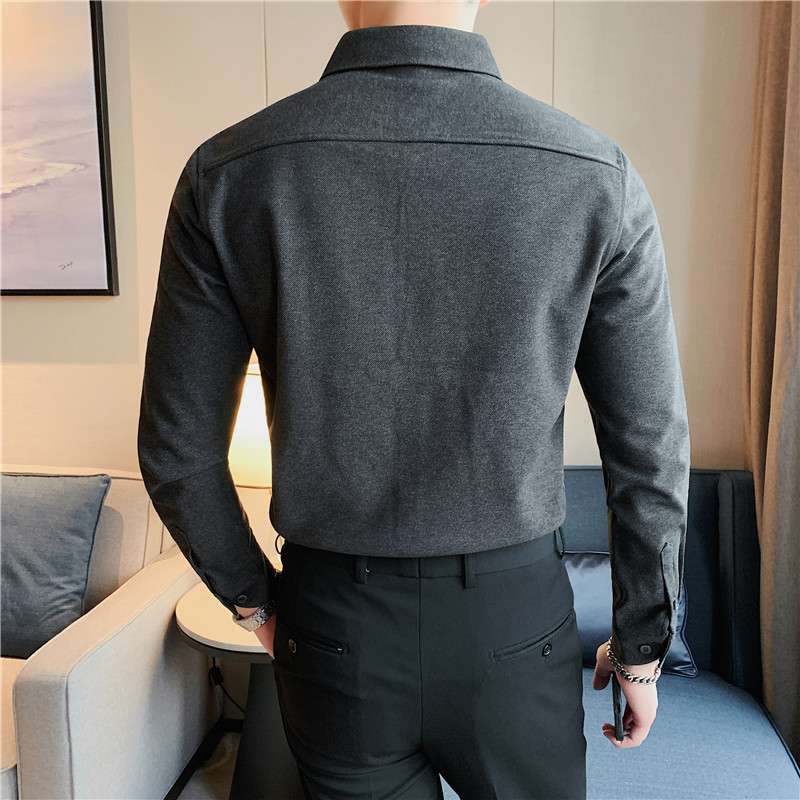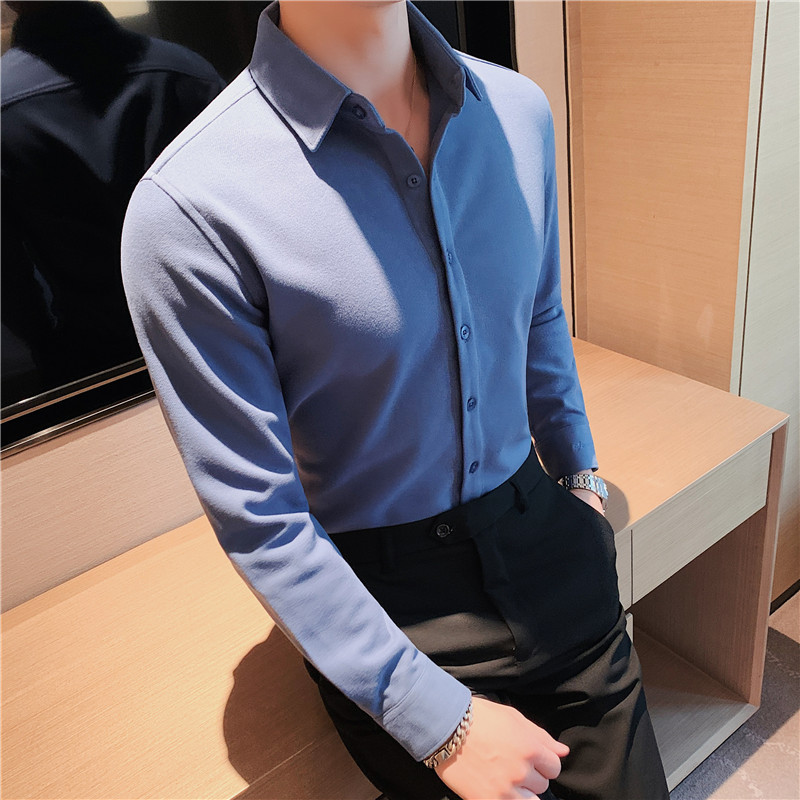 TikTok Little Red Book 추천 가을과 겨울 두꺼운 슬림 핏 남성용 긴팔 셔츠 하이 엔드 양면 벨벳 따뜻한 모직 셔츠