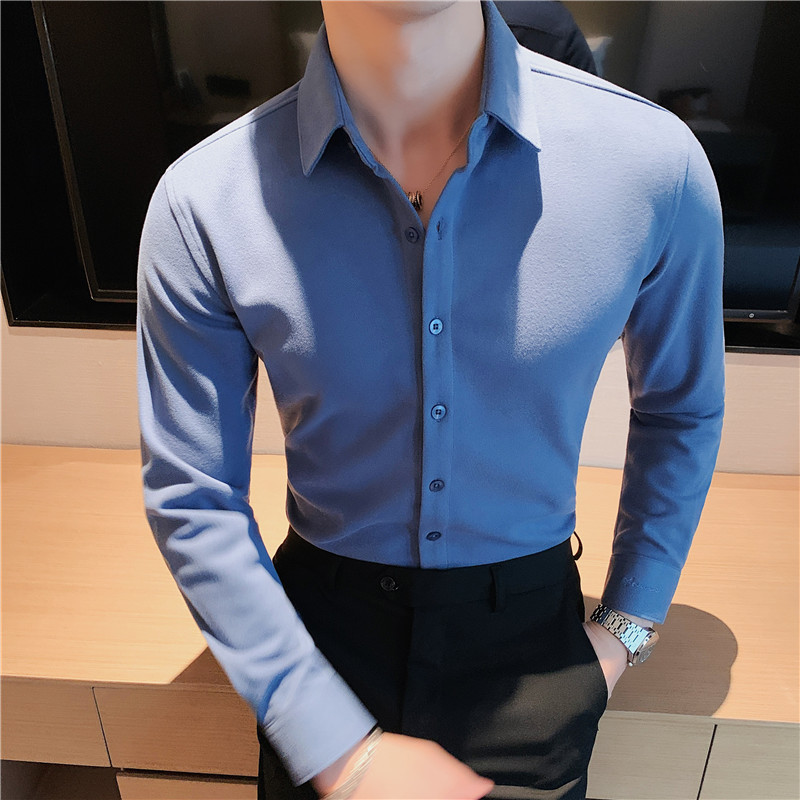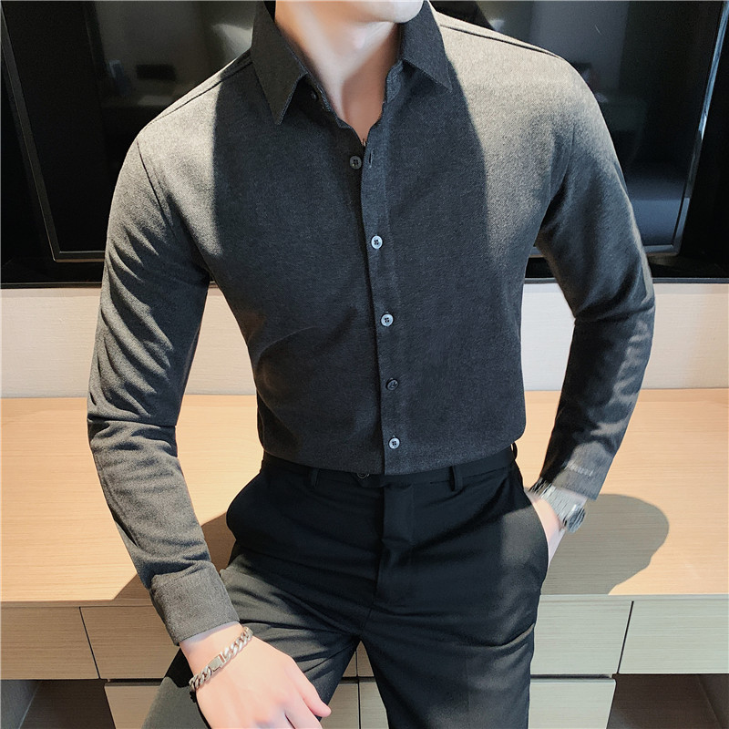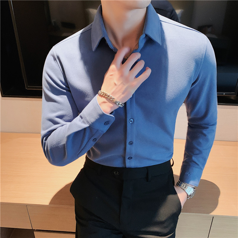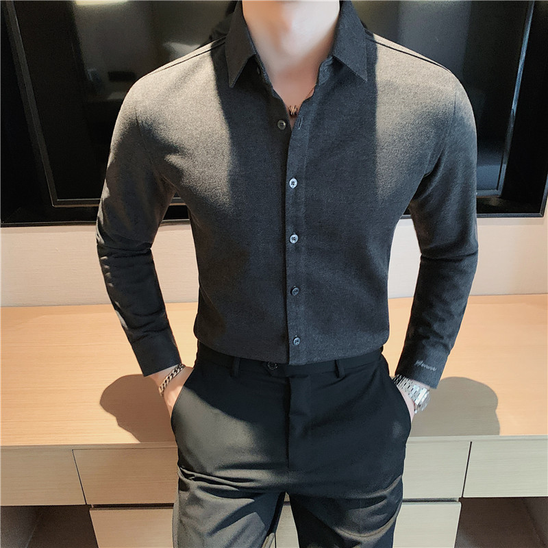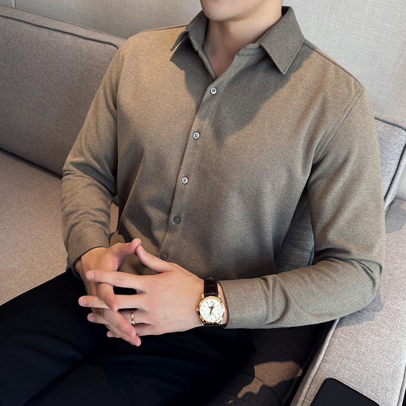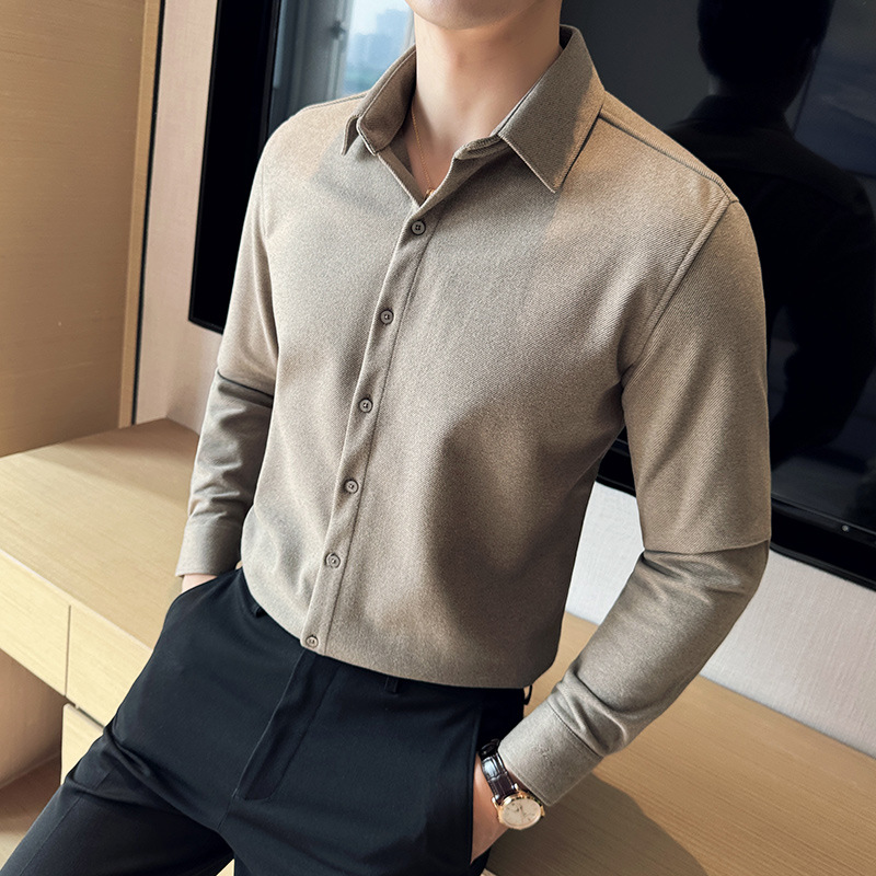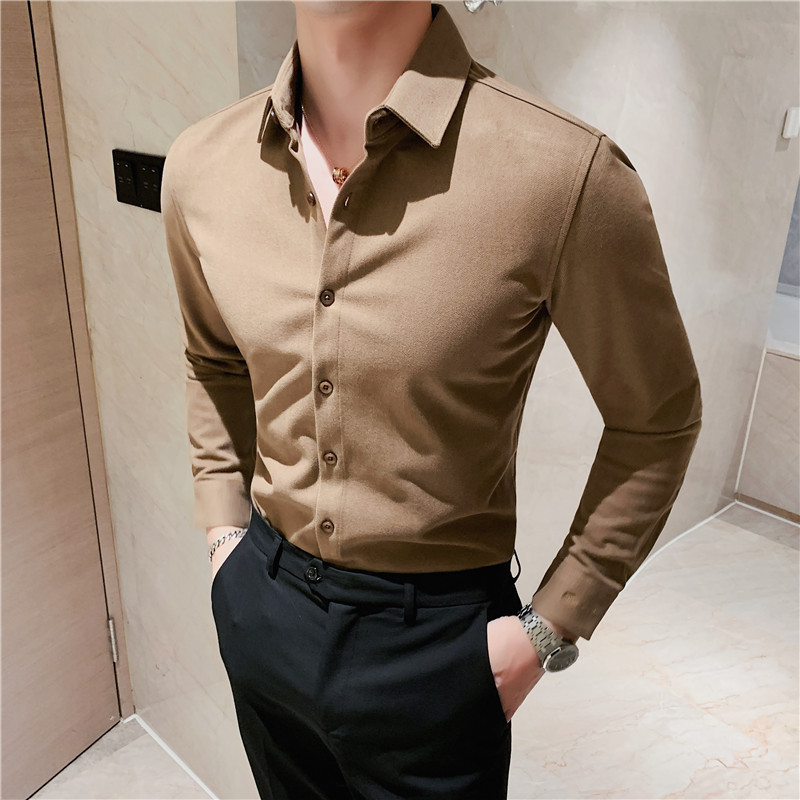 TikTok Little Red Book 추천 가을과 겨울 두꺼운 슬림 핏 남성용 긴팔 셔츠 하이 엔드 양면 벨벳 따뜻한 모직 셔츠