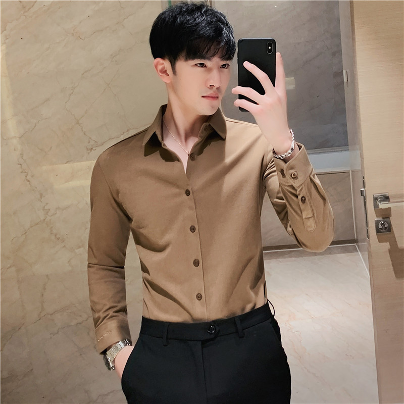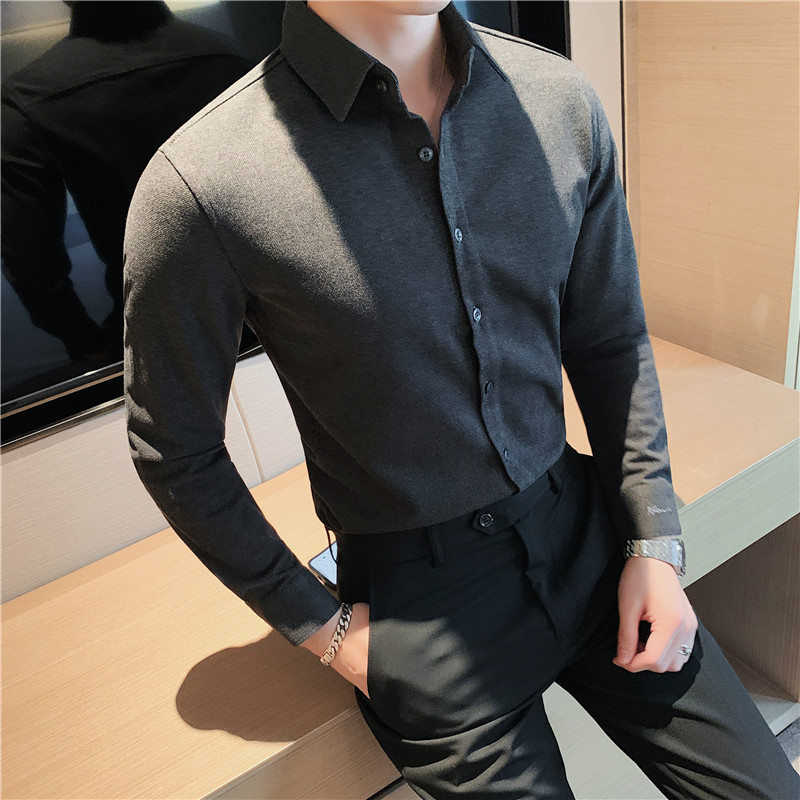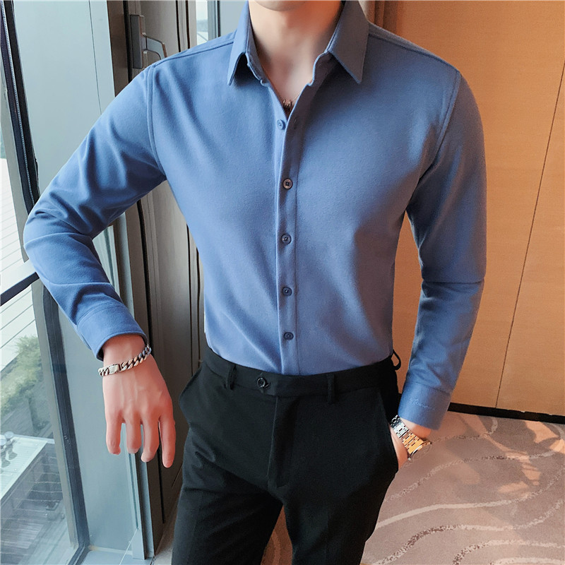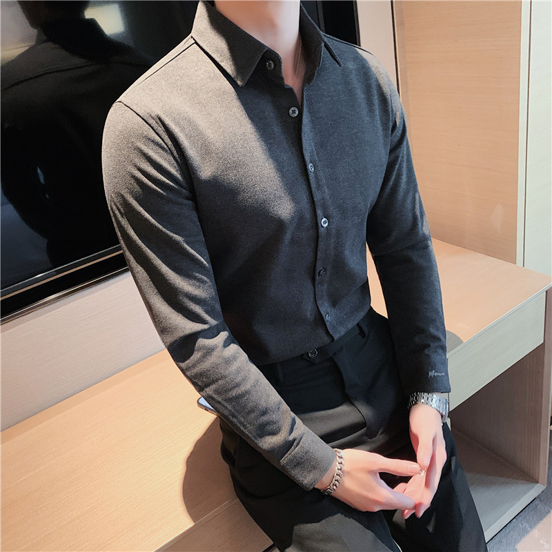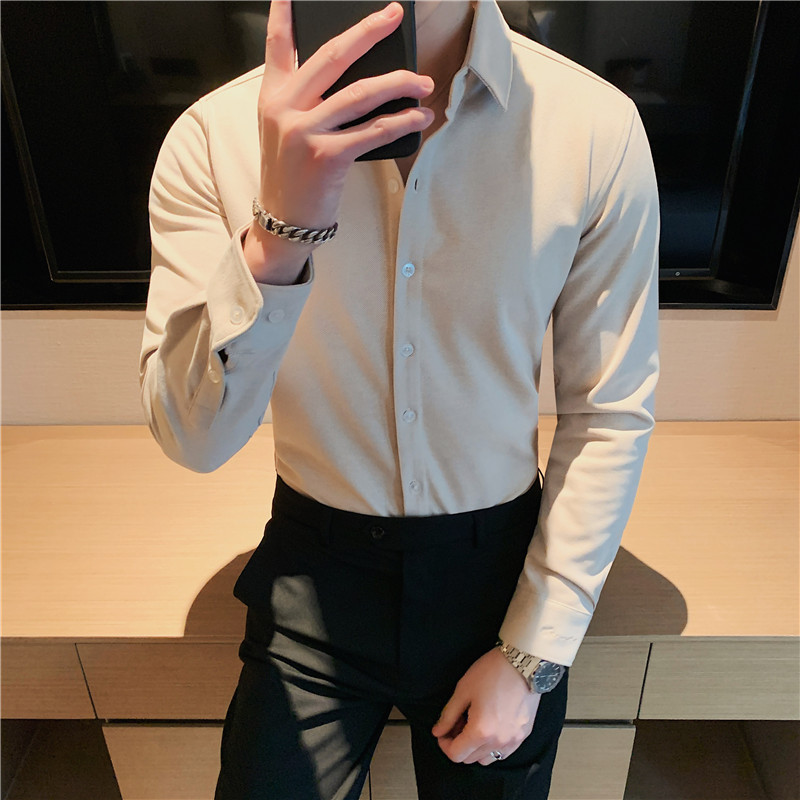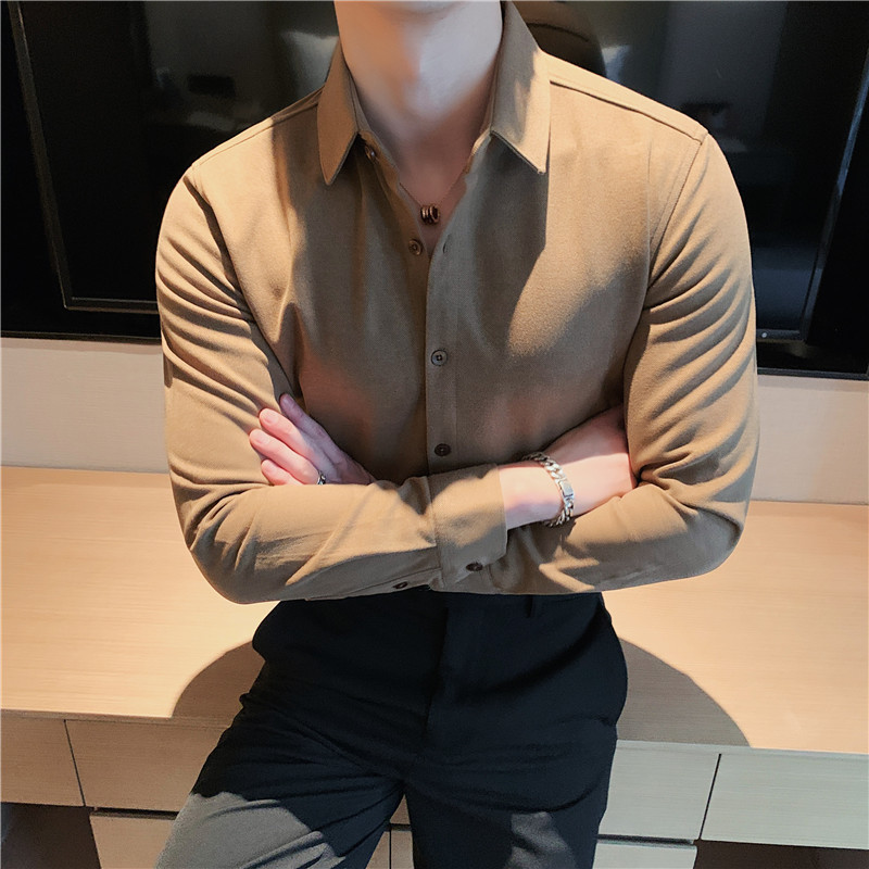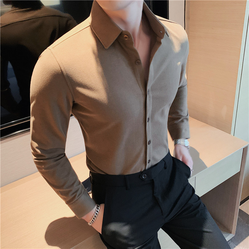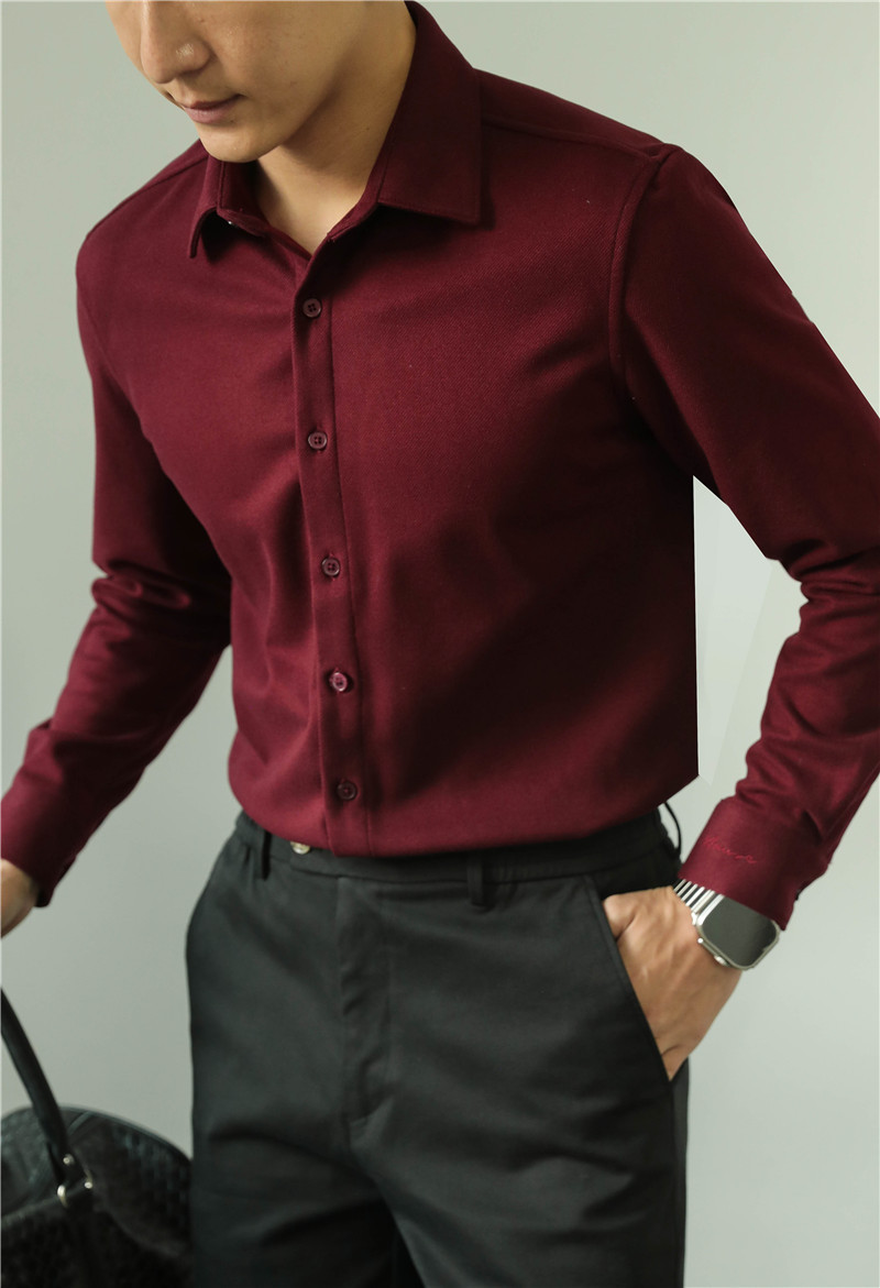 TikTok Little Red Book 추천 가을과 겨울 두꺼운 슬림 핏 남성용 긴팔 셔츠 하이 엔드 양면 벨벳 따뜻한 모직 셔츠