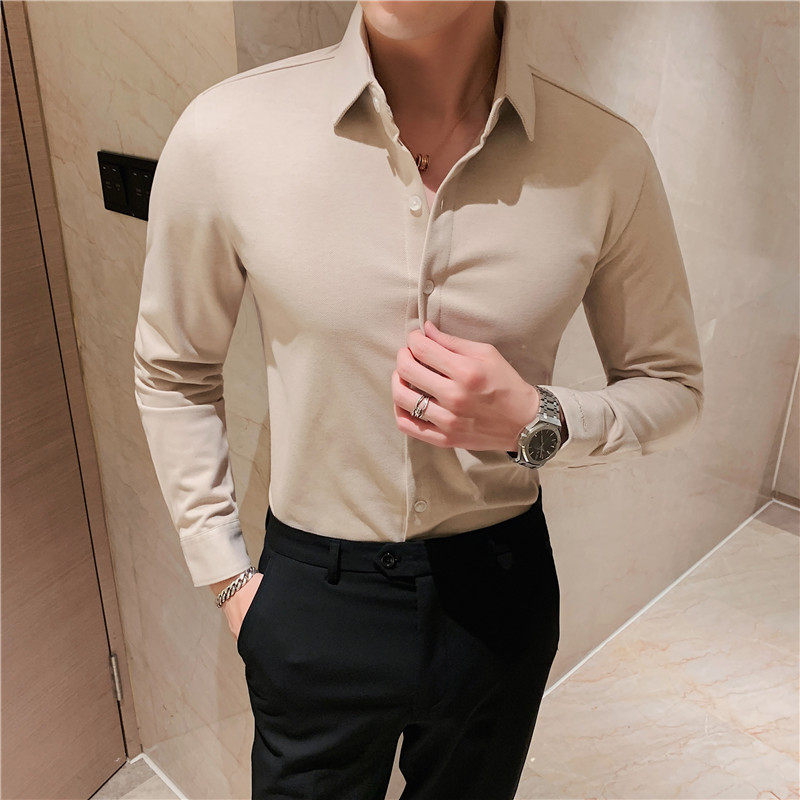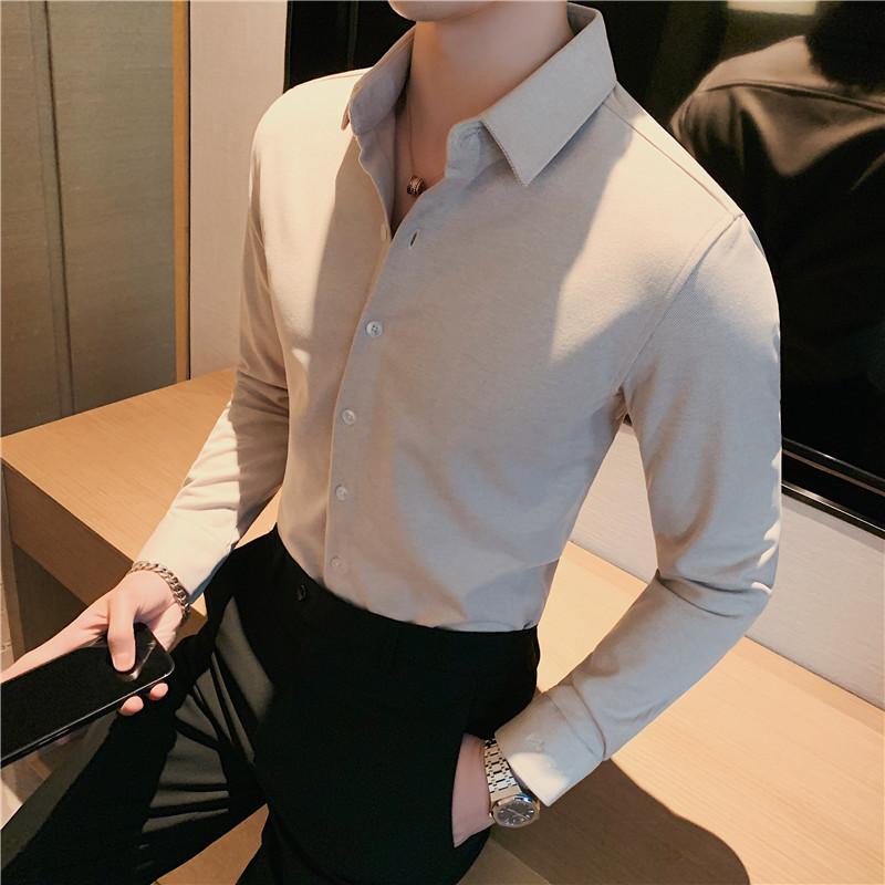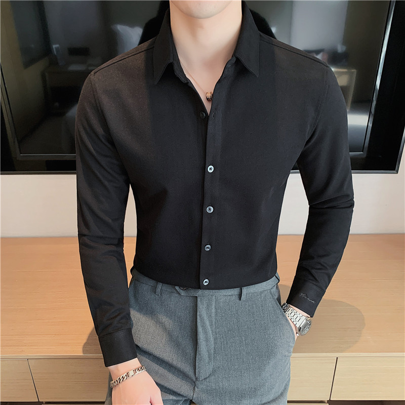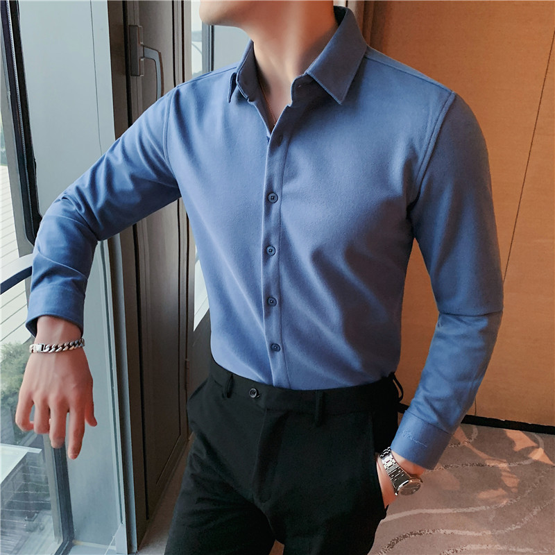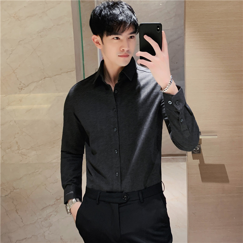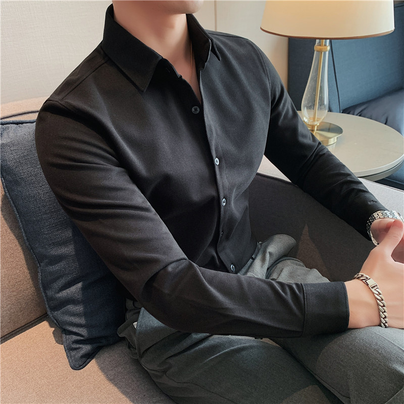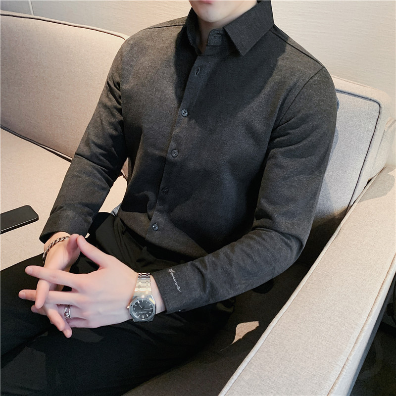 TikTok Little Red Book 추천 가을과 겨울 두꺼운 슬림 핏 남성용 긴팔 셔츠 하이 엔드 양면 벨벳 따뜻한 모직 셔츠