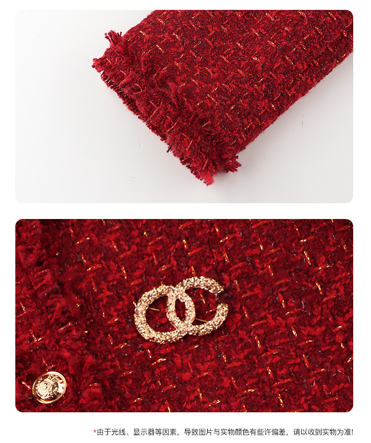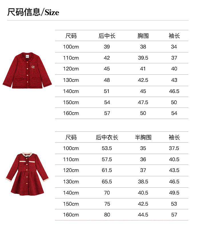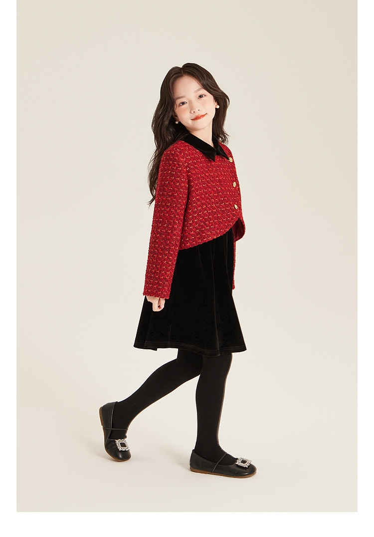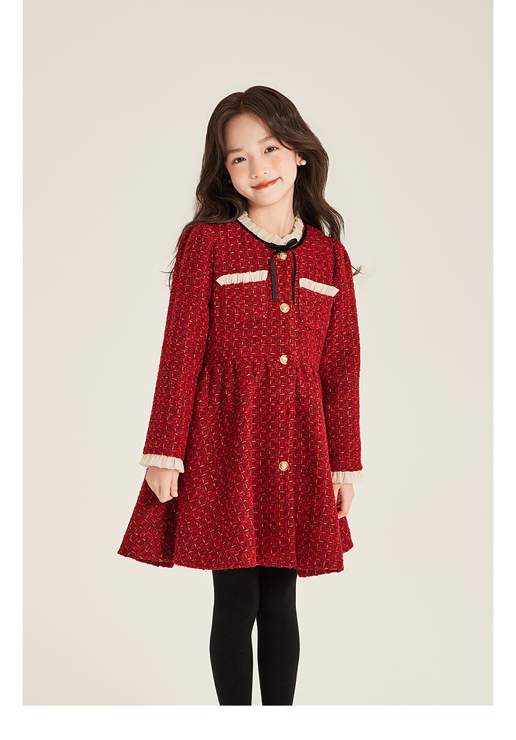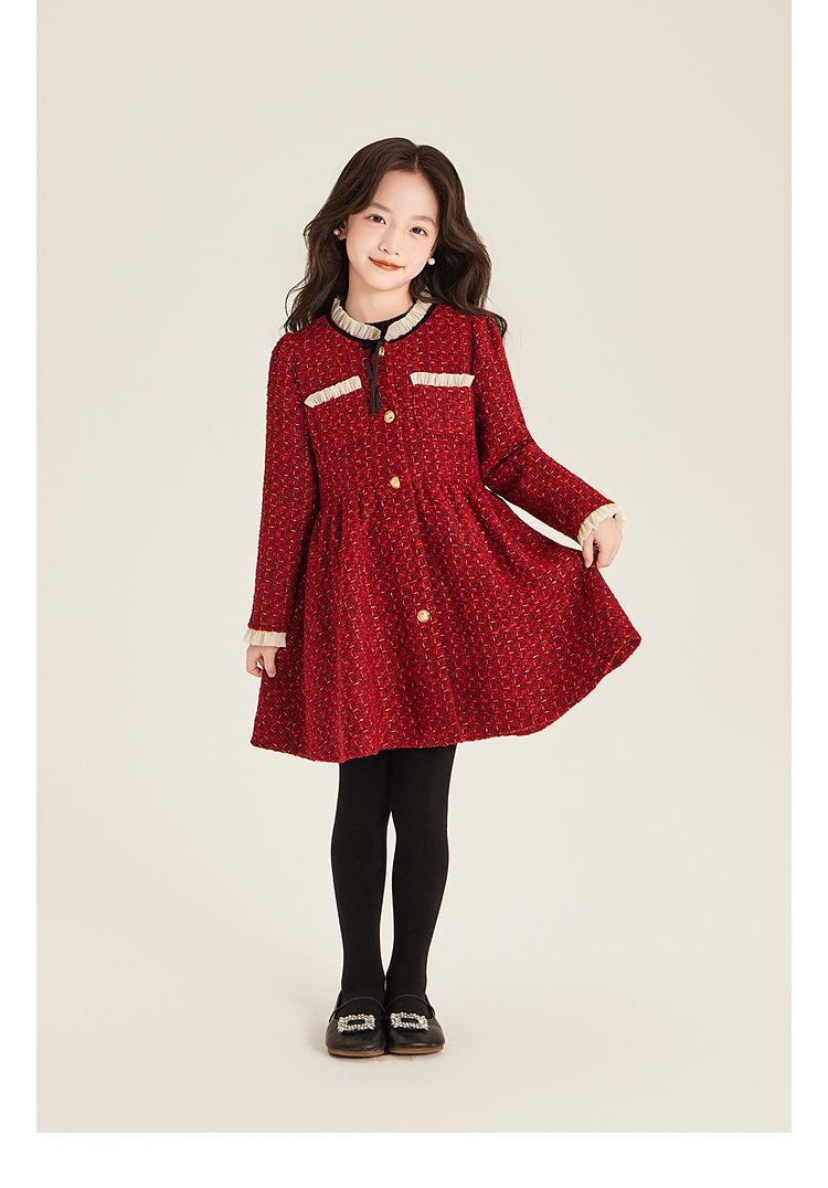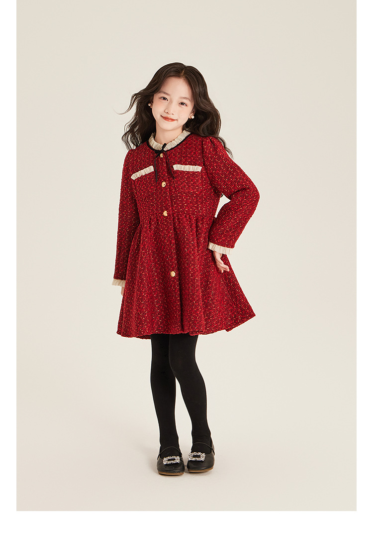 Amybaby Girls 세트 겨울 2024 새로운 레드 샤넬 고급 원피스 울 코튼 재킷스토어 가기