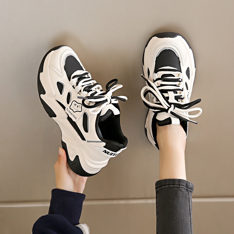 여성 신발 2024 겨울 새 스톰프 느낌 두꺼운 단독 증가 토레 신발 착용 방지 미끄럼 방지 올 매치 스포츠 신발