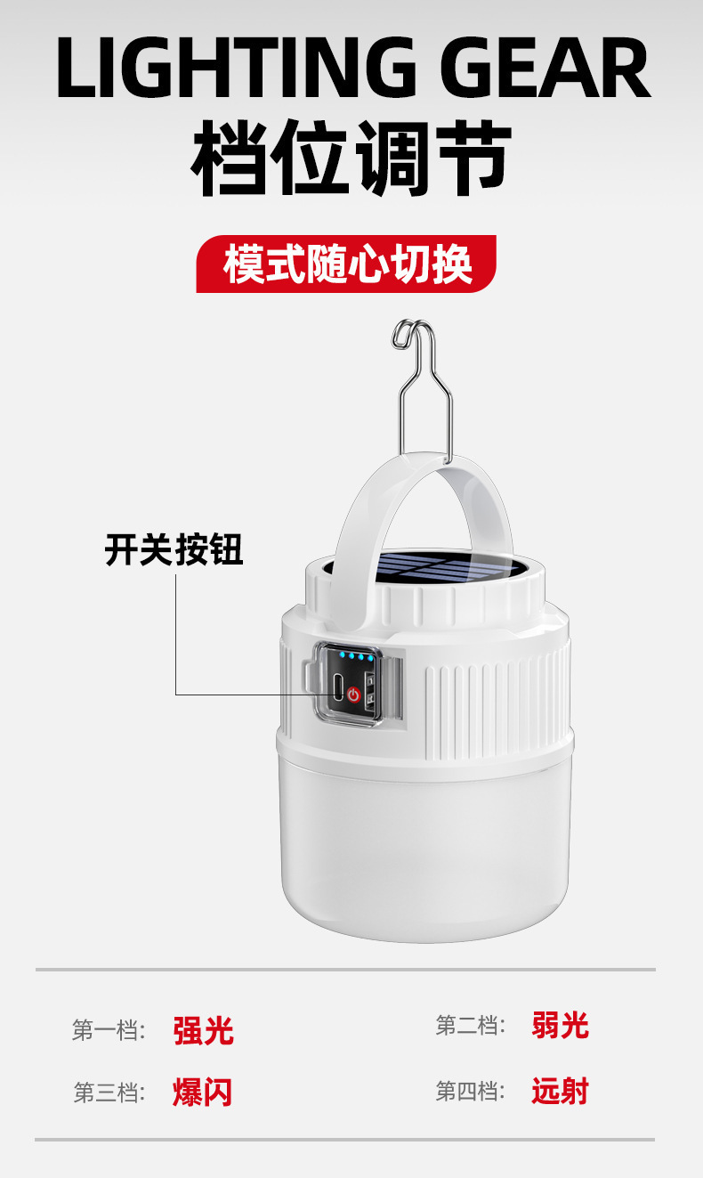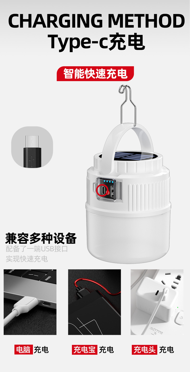 다기능 캠핑 램프, 태양광 충전, 야외 조명, 캠핑장 텐트 램프, 노점 램프, 가정용 비상 걸이 램프
