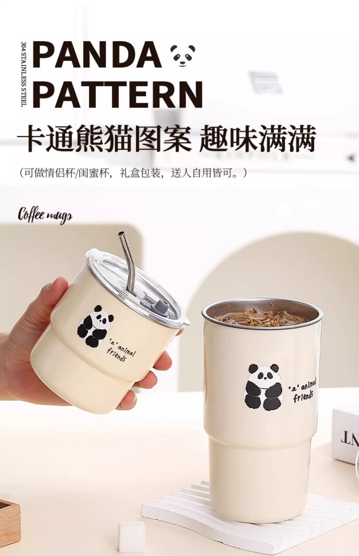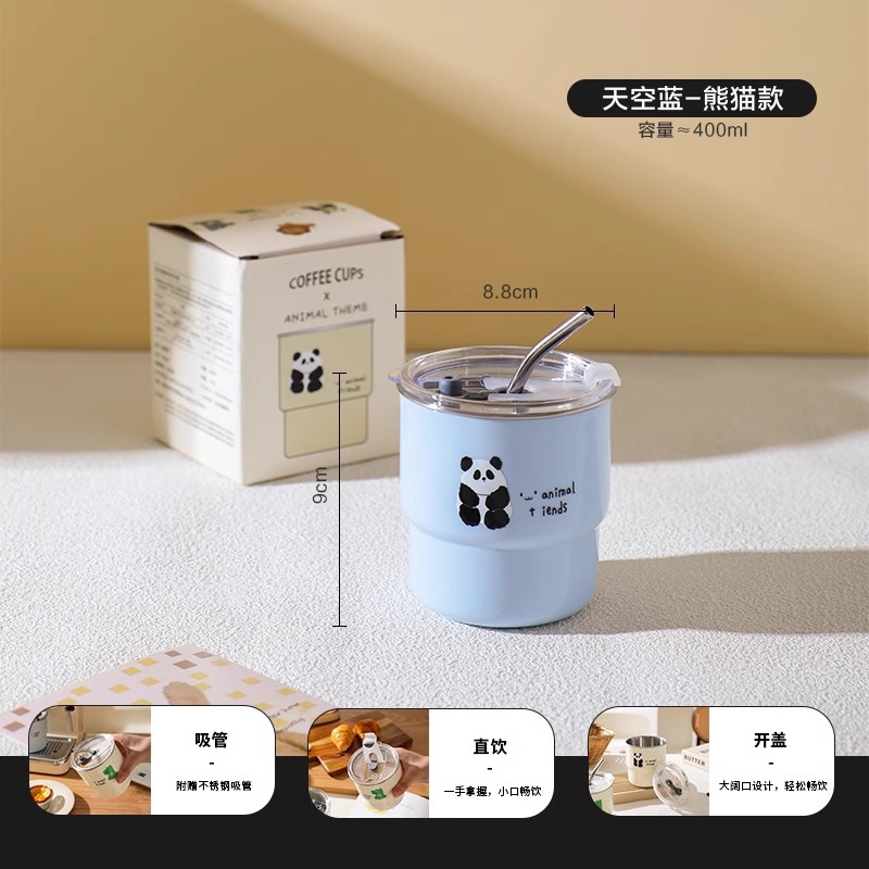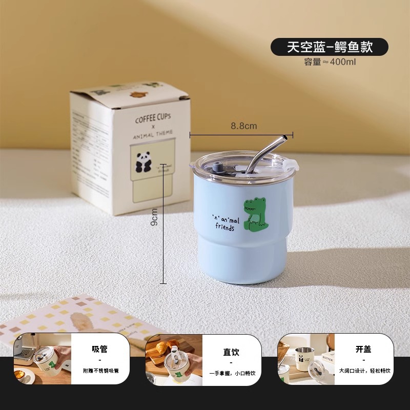 304 스테인레스 스틸 커피 컵 홈 휴대용 머그잔 창조적 인 만화 높은 가치의 사무실 컵 뚜껑