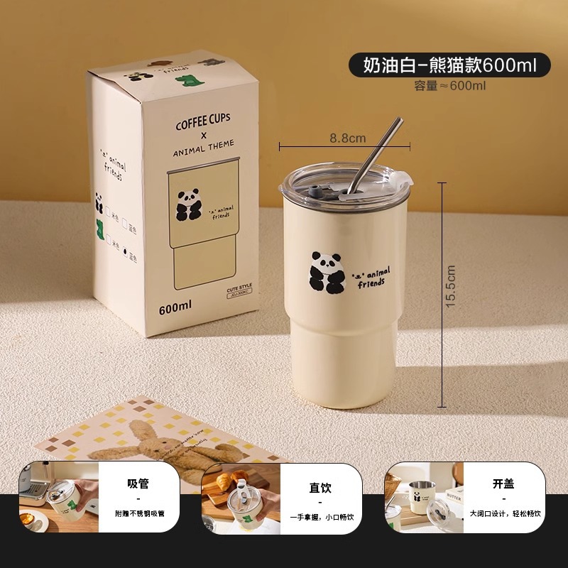 304 스테인레스 스틸 커피 컵 홈 휴대용 머그잔 창조적 인 만화 높은 가치의 사무실 컵 뚜껑스토어 가기