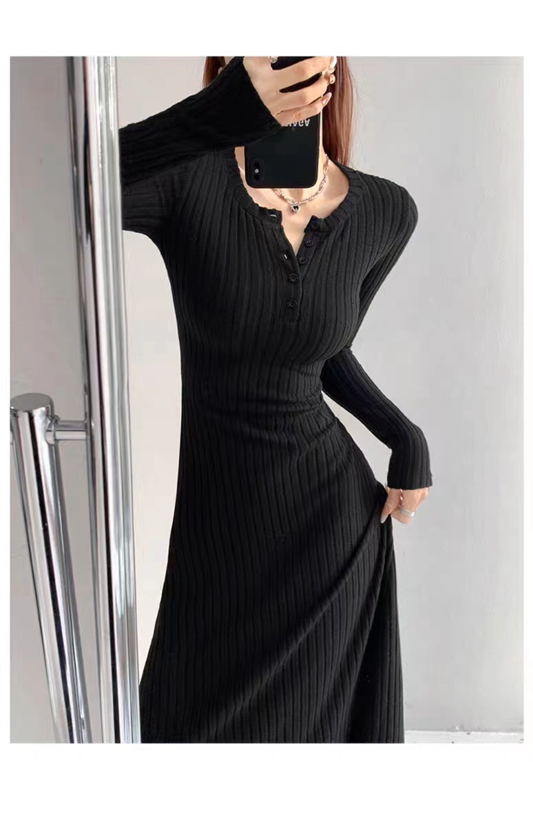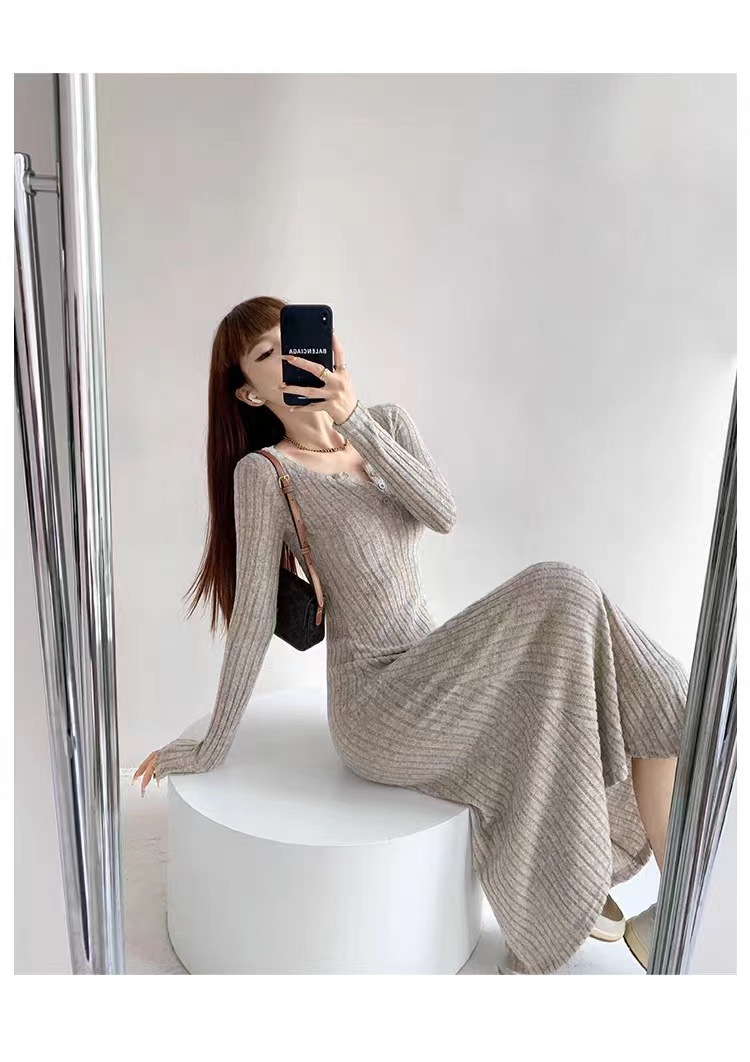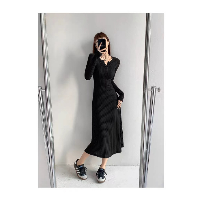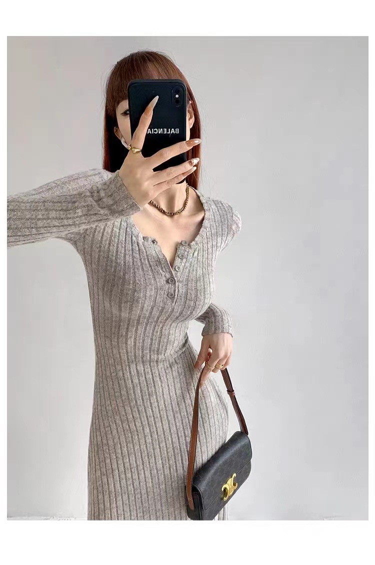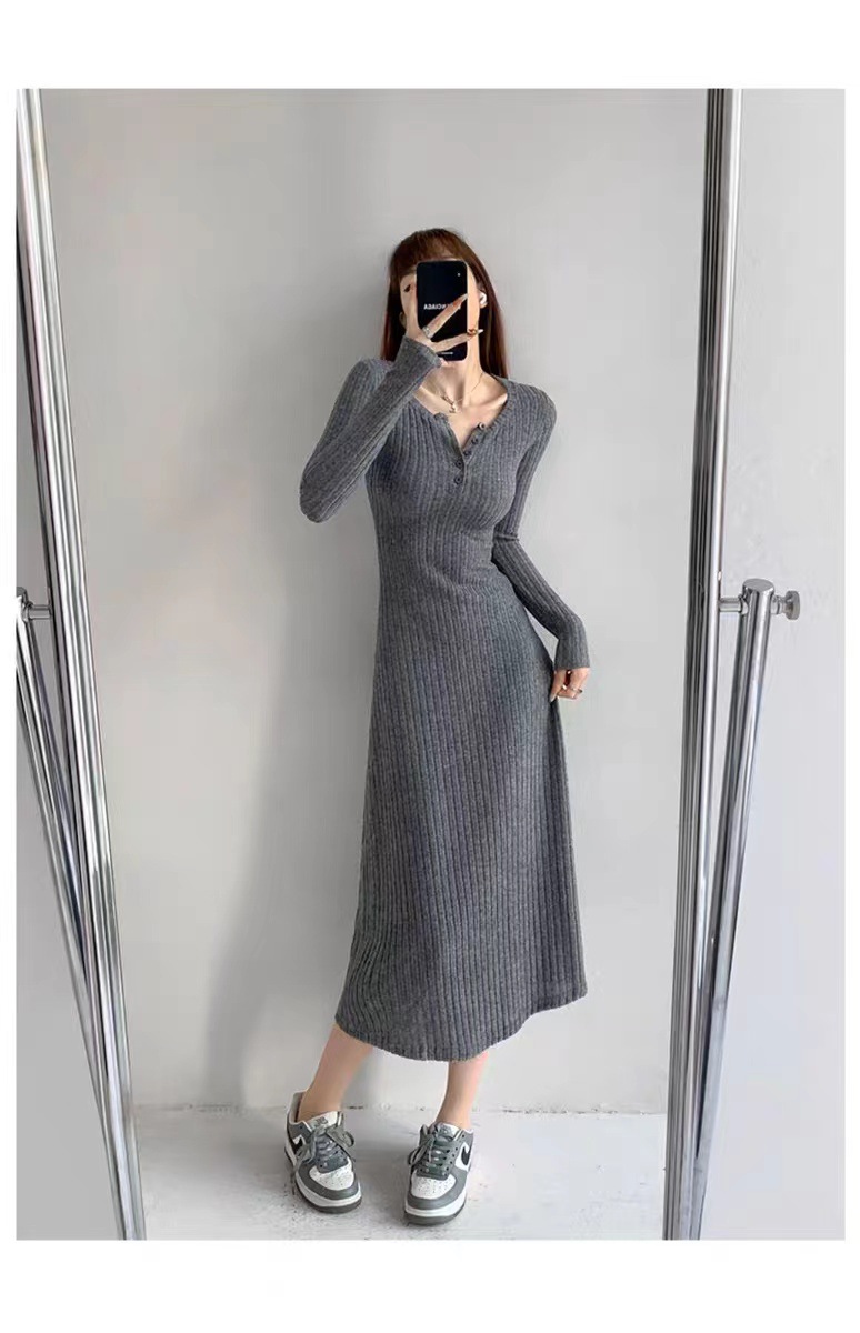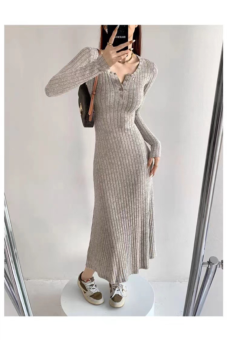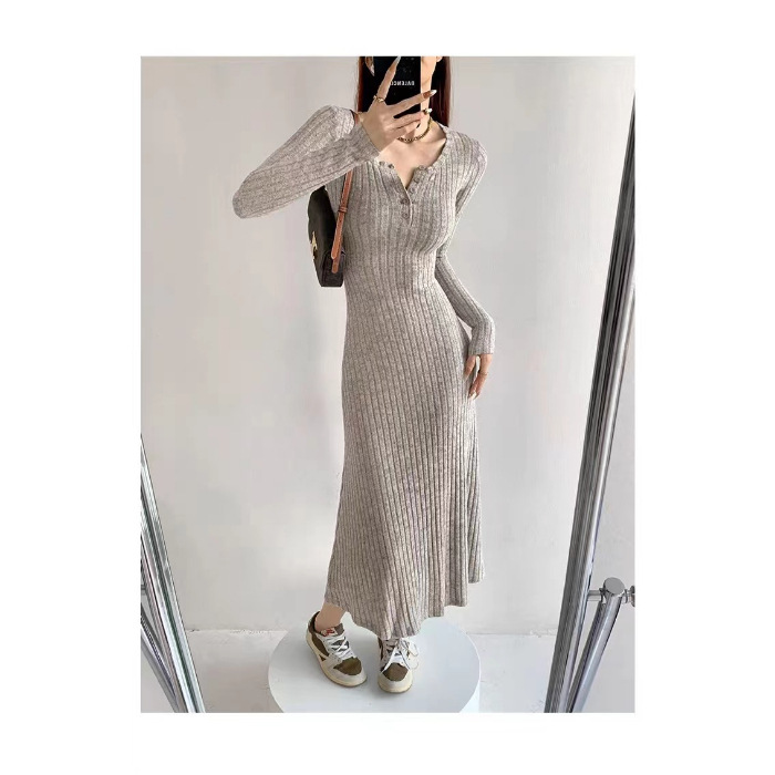 하이 엔드 허리 중간 길이 니트 스웨터 원피스 여성의 2025 년 이른 봄 새로운 게으른 바람 높은 탄성 원피스스토어 가기