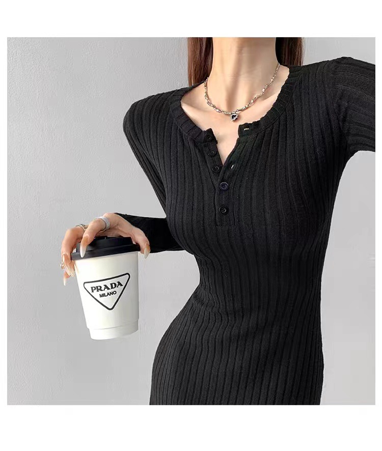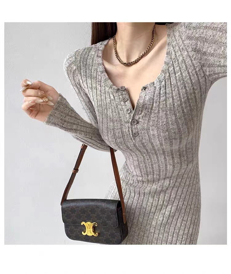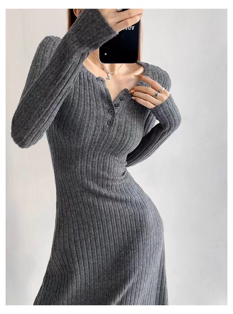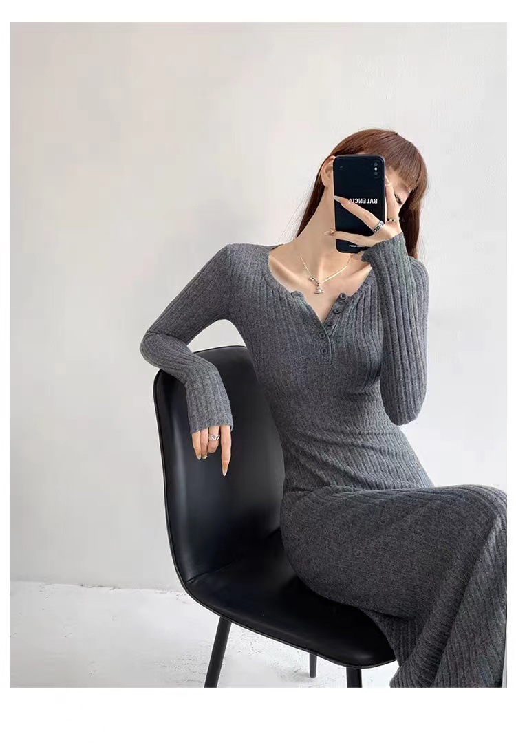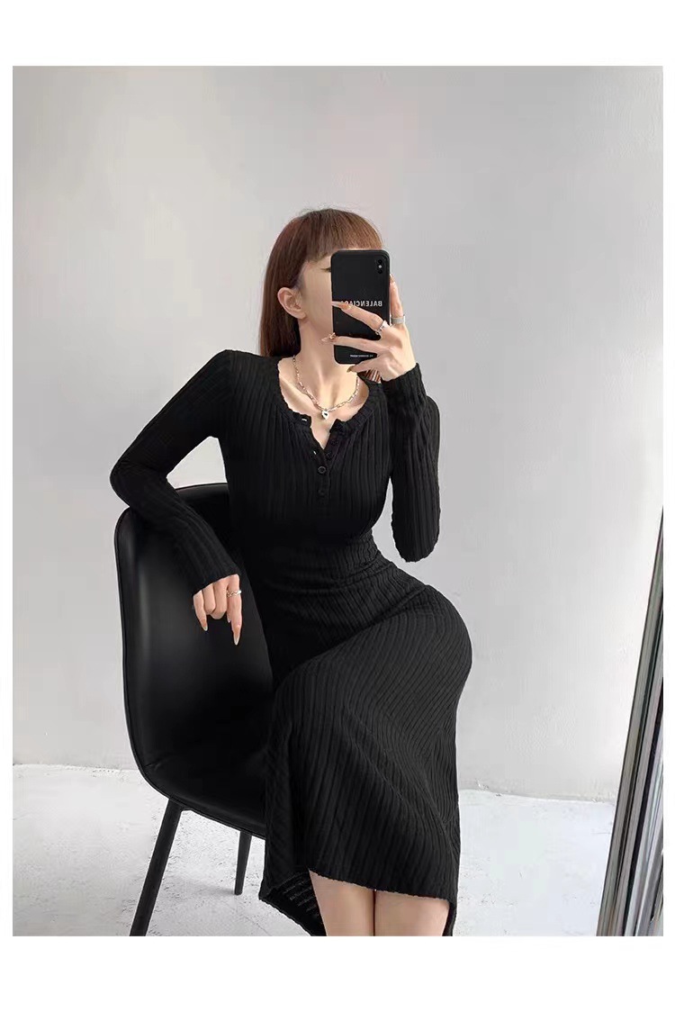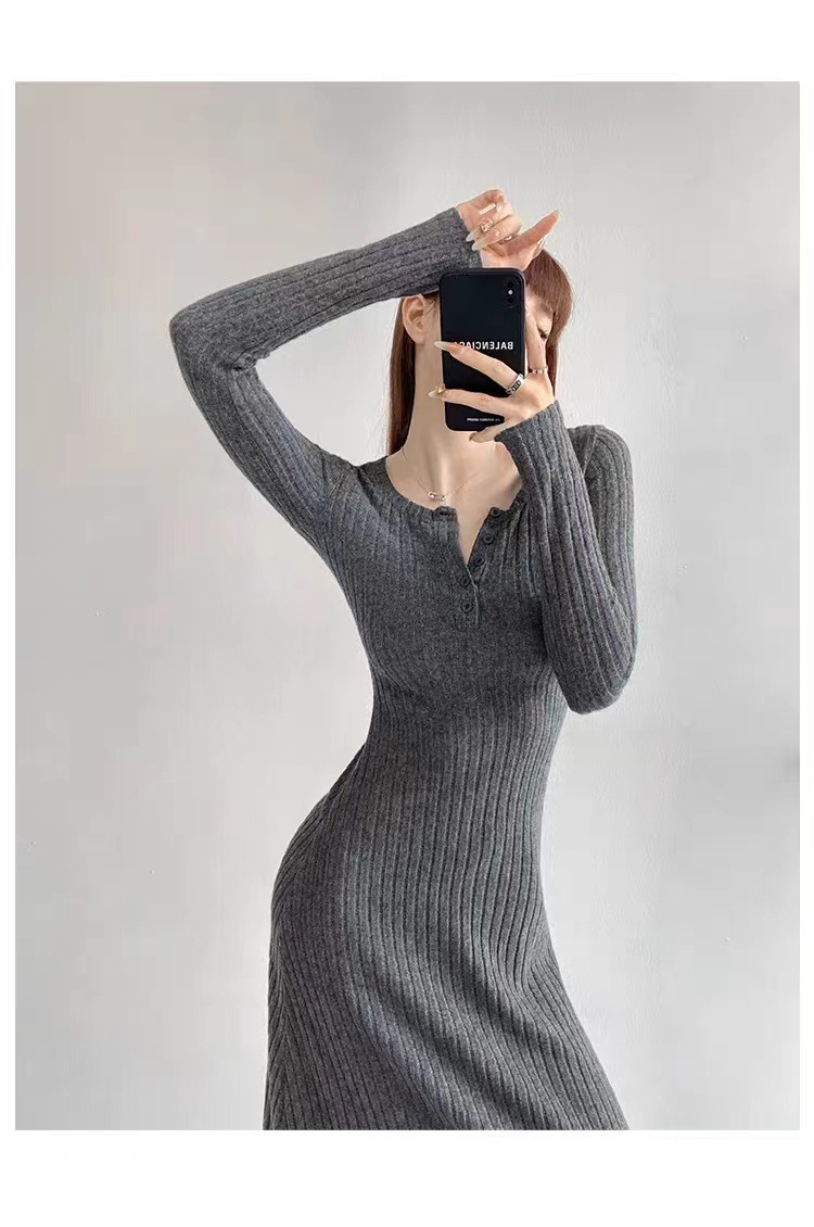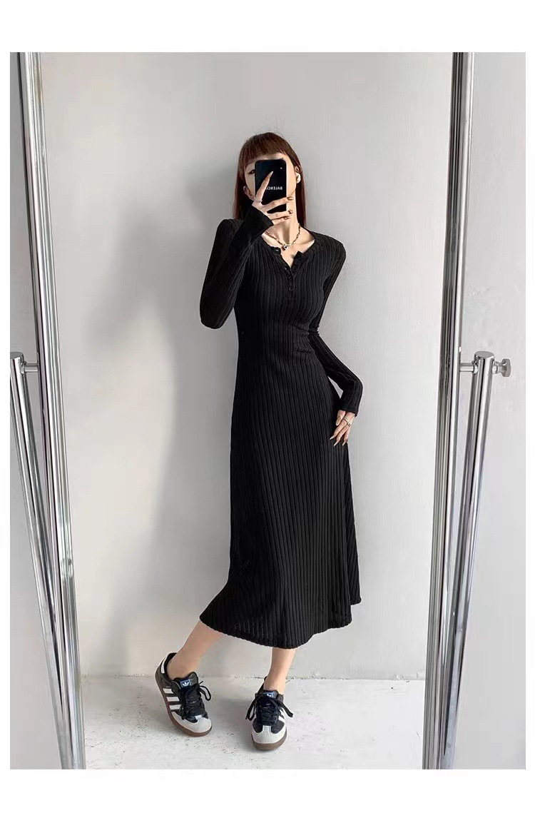 하이 엔드 허리 중간 길이 니트 스웨터 원피스 여성의 2025 년 이른 봄 새로운 게으른 바람 높은 탄성 원피스스토어 가기