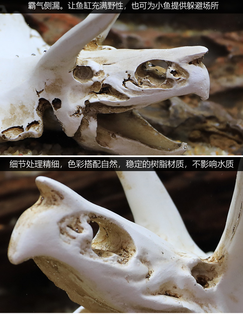공룡 두개골 두개골 탈출 집 수지 바위 수생 풍경 두개골 물고기 탱크 수족관 장식 장식품 체인 스케일