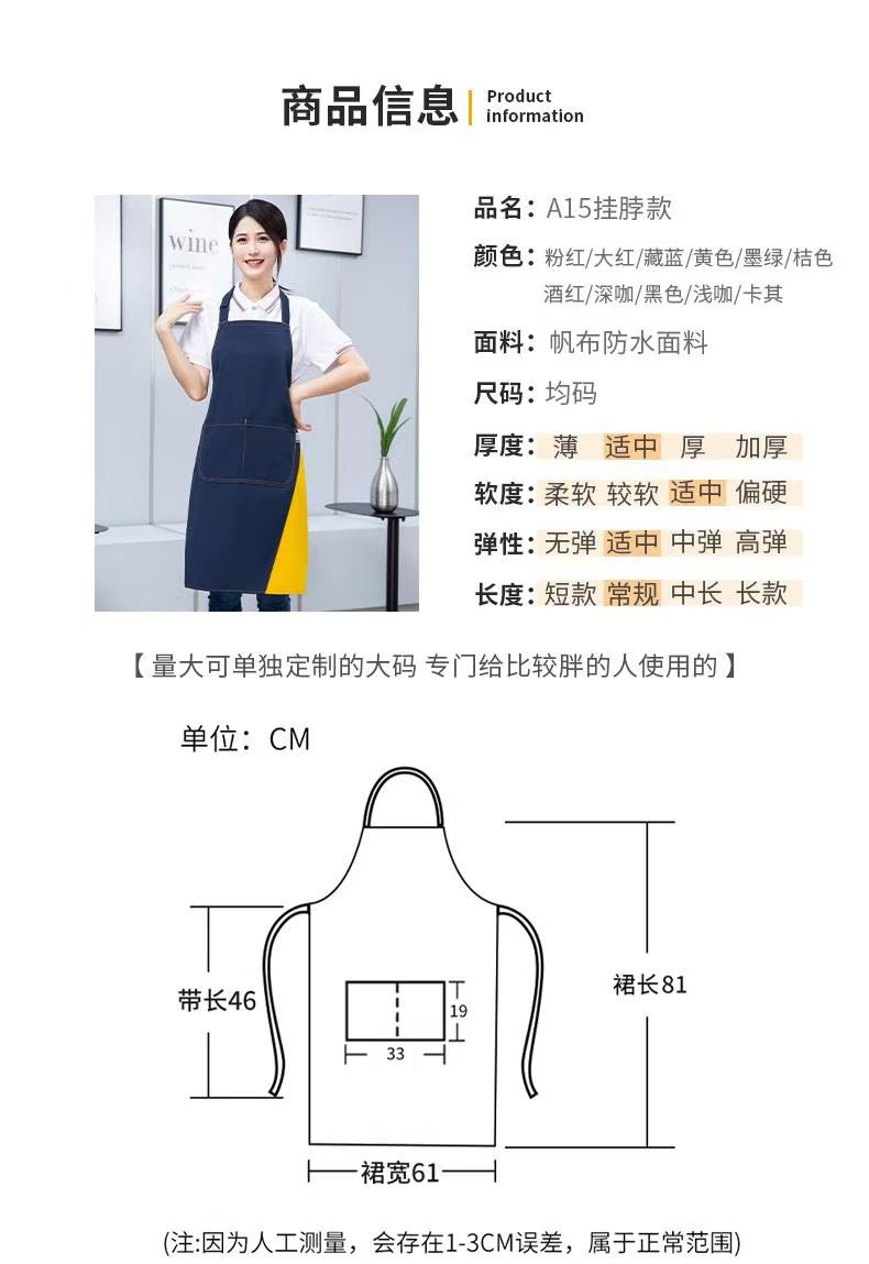 캔버스 앞치마 맞춤 로고 케이터링 커피 우유 차 가게 네일 아트 주방 웨이터 작업 옷 방수 허리 여성