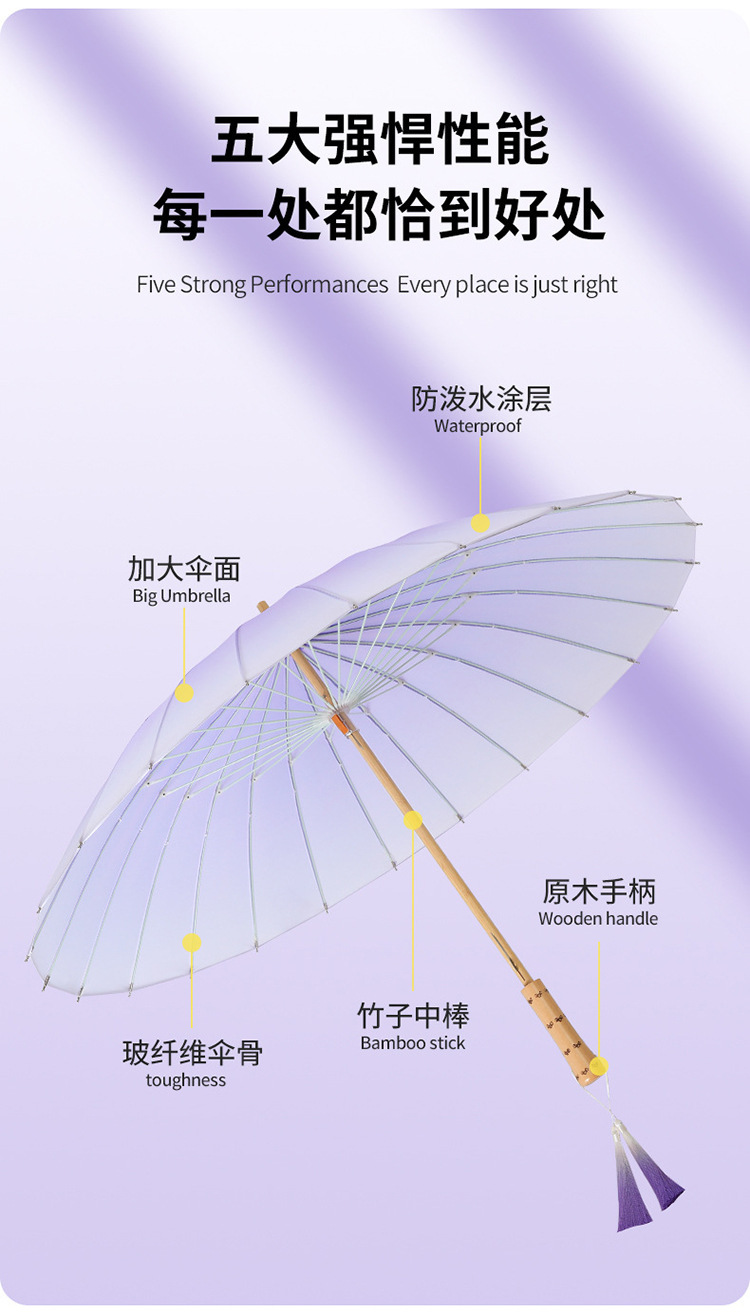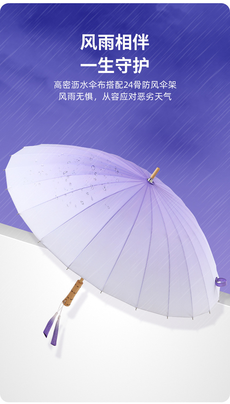 24 뼈 스트레이트 로드 태슬 우산 딥 시리즈 그라디언트 방풍 점차적으로 복고풍 스타일 스트레이트 핸들 우산 강화 인쇄 가능한 광고 사용자 정의