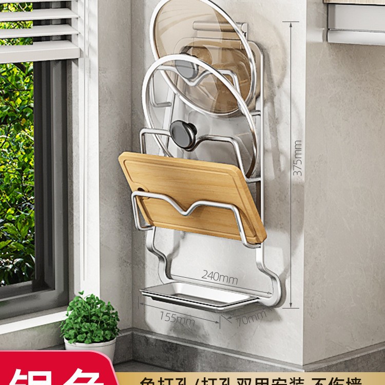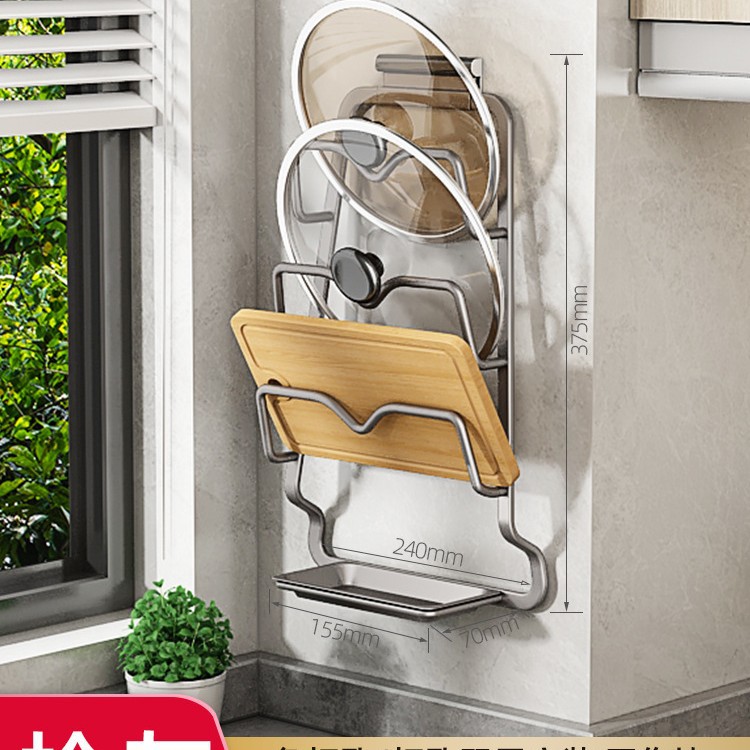 냄비 커버 선반 벽걸이 주방 스토리지 랙 도마 배치 랙 펀치없는 벽 스토리지 랙 포트 커버 아티팩트스토어 가기