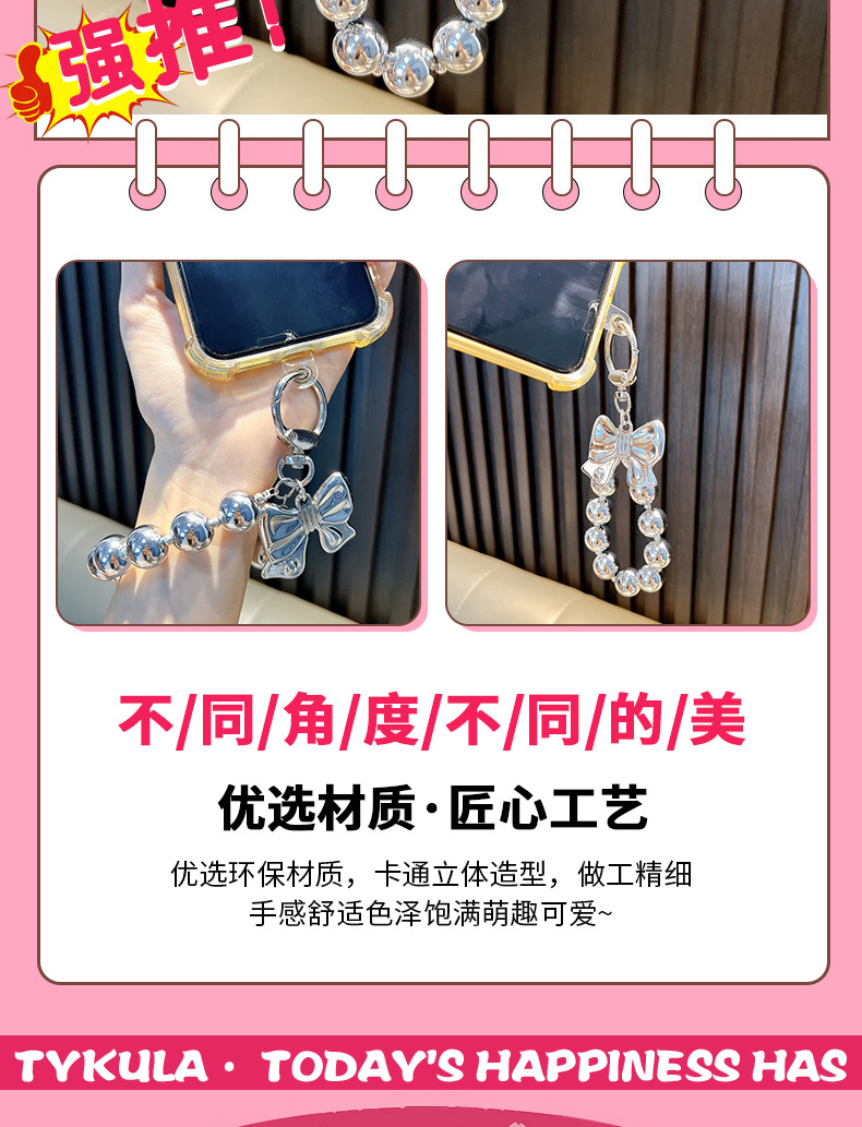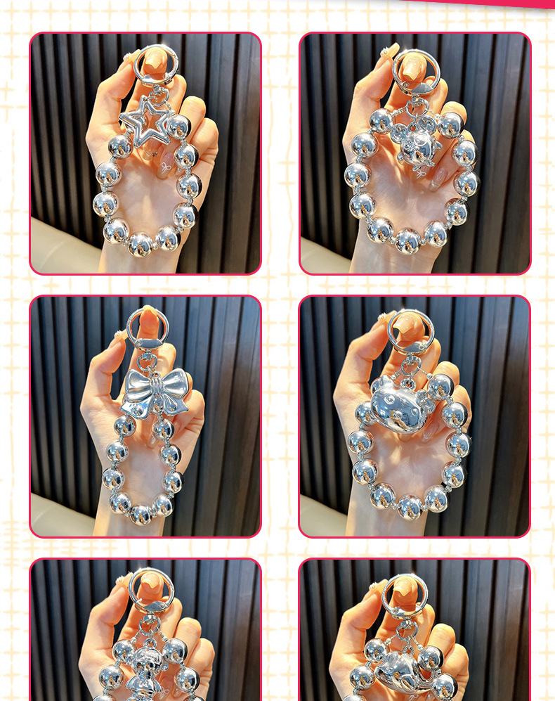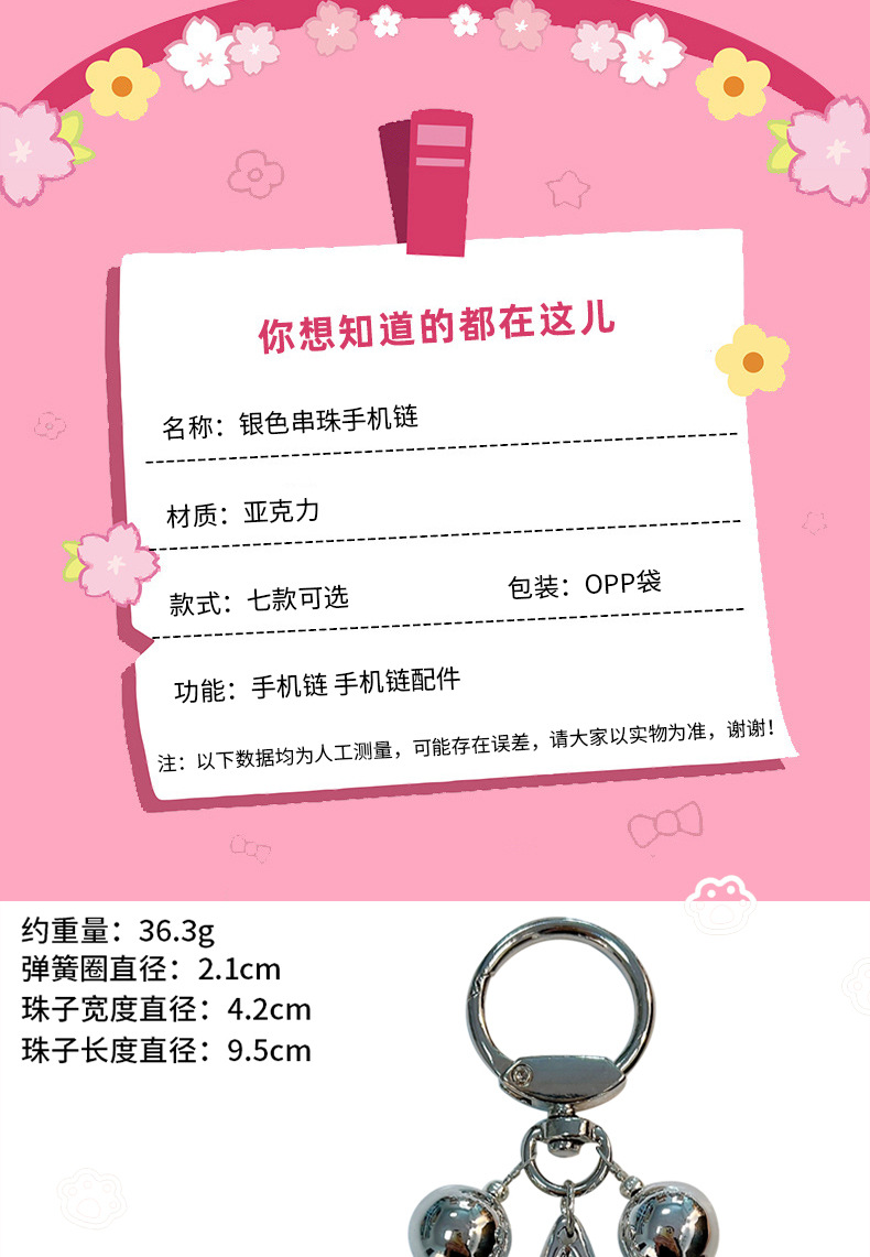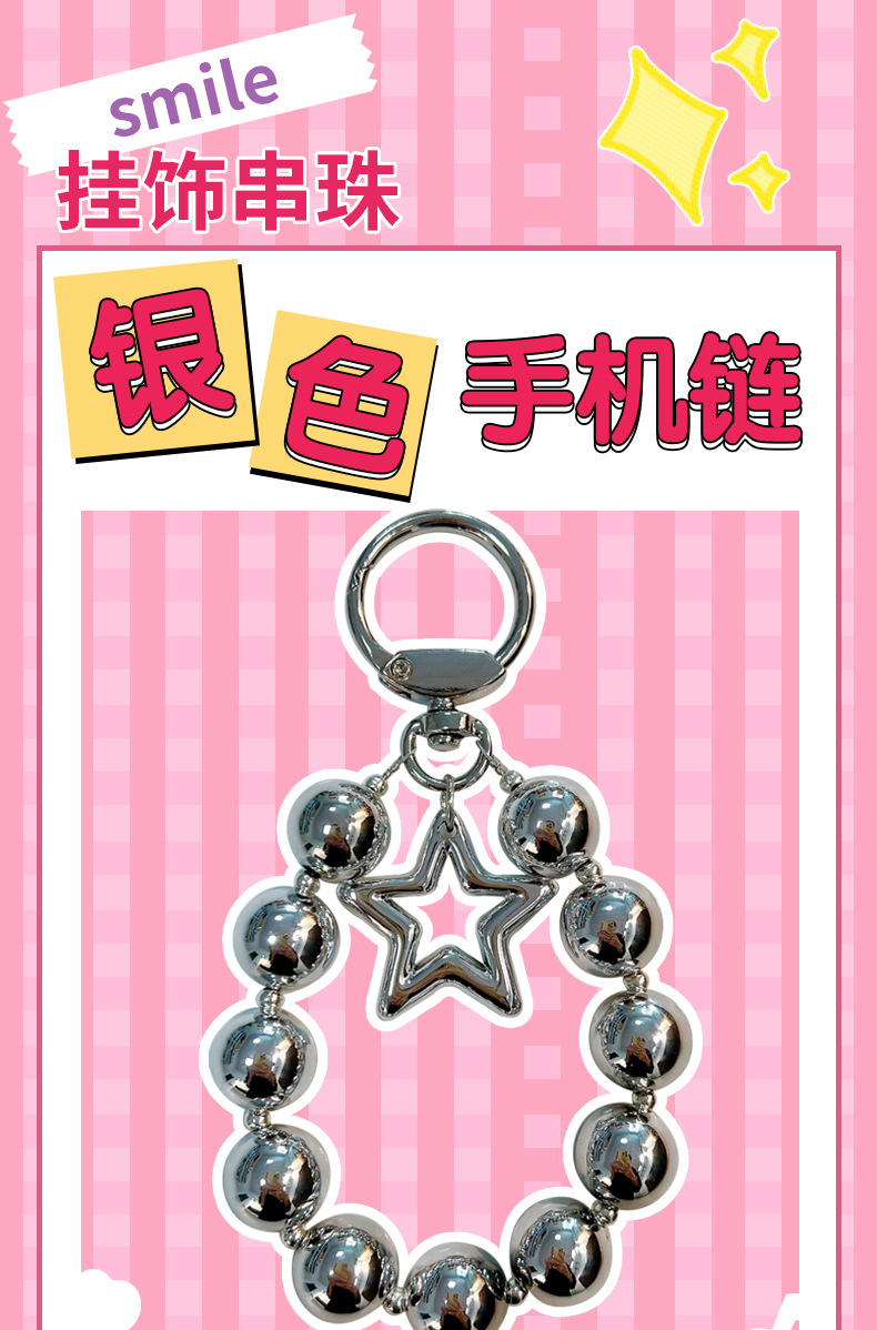 구슬 실버 전화 체인 키 체인 소녀 전화 케이스 체인 자동차 키 액세서리 가방 펜던트 작은 선물