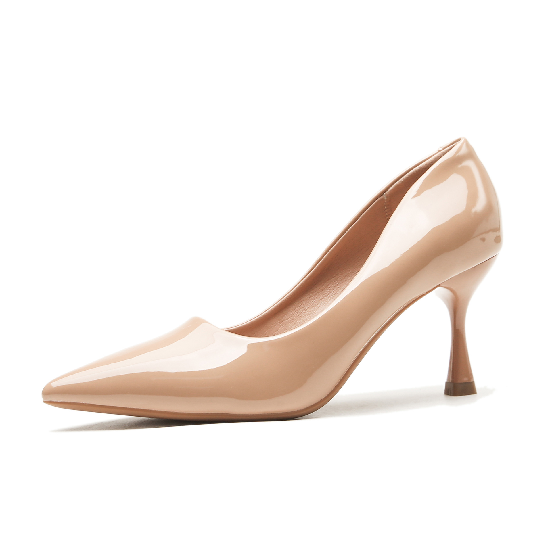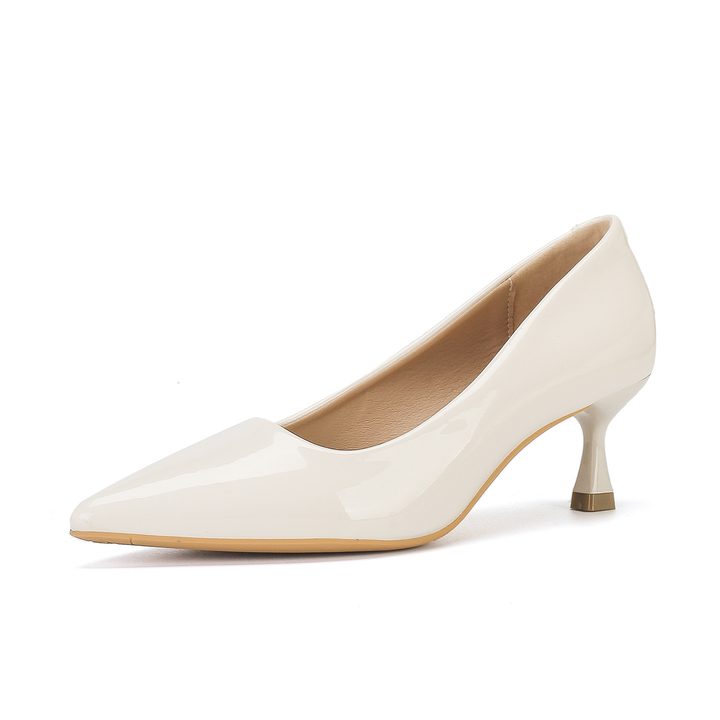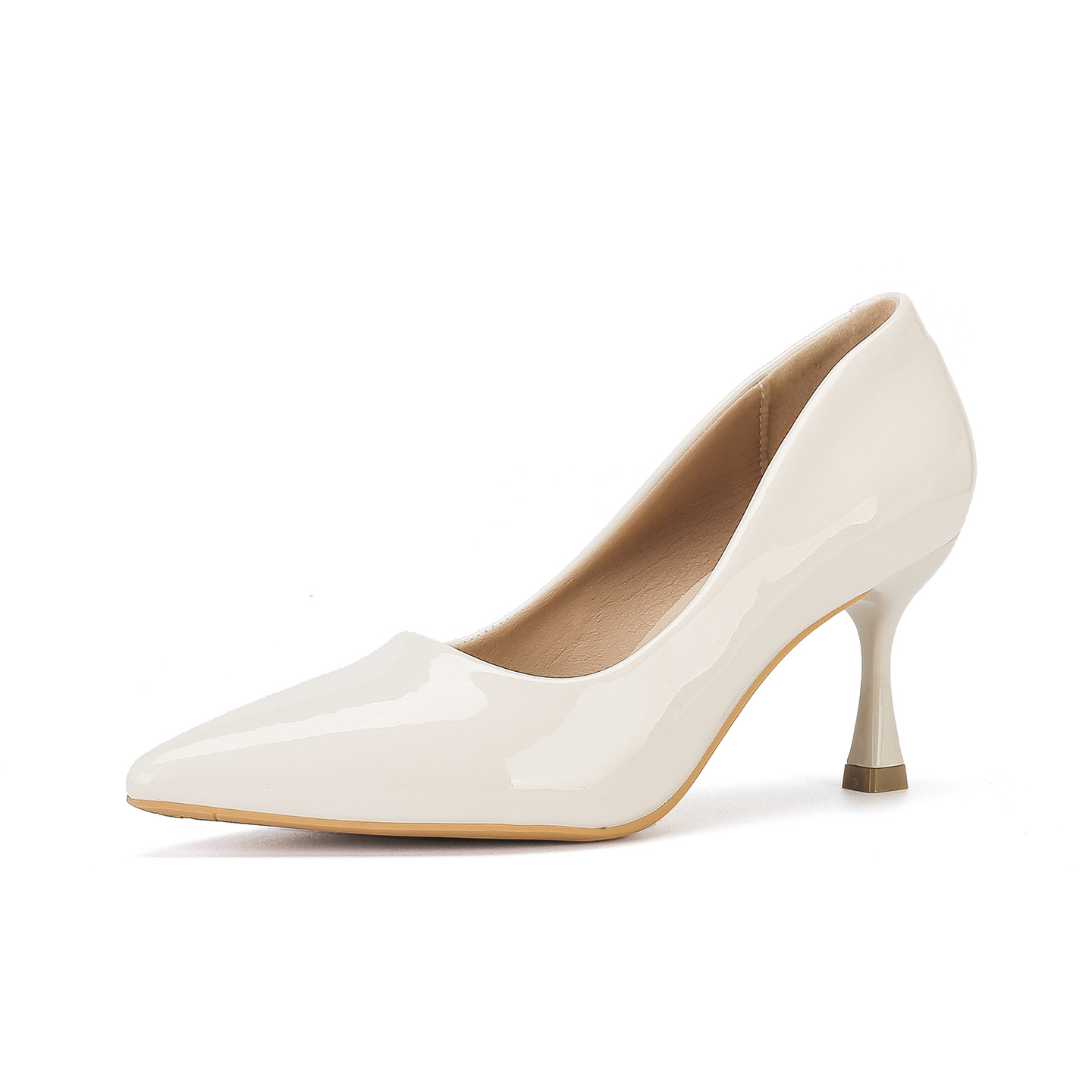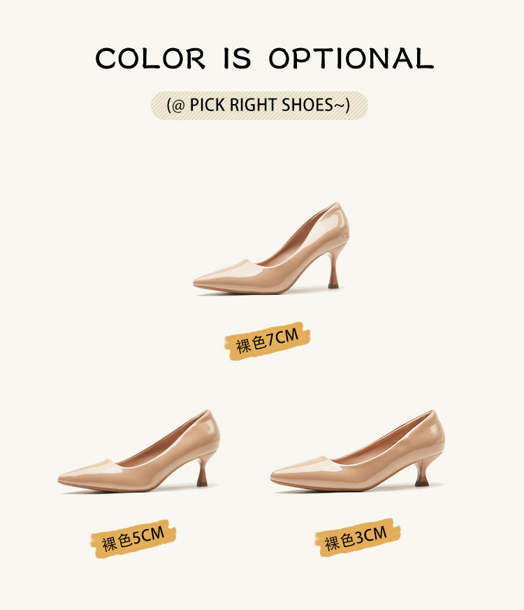 여성용 730-3 순수한 섹시 누드 컬러 하이힐 2025 새로운 스타일 프렌치 스타일 얕은 입 얇은 굽 페이턴트 가죽 뾰족한 발가락 신발스토어 가기