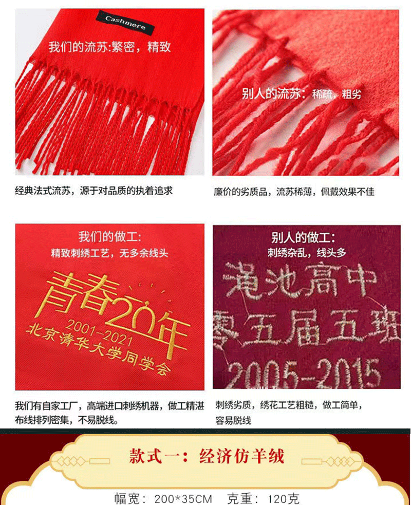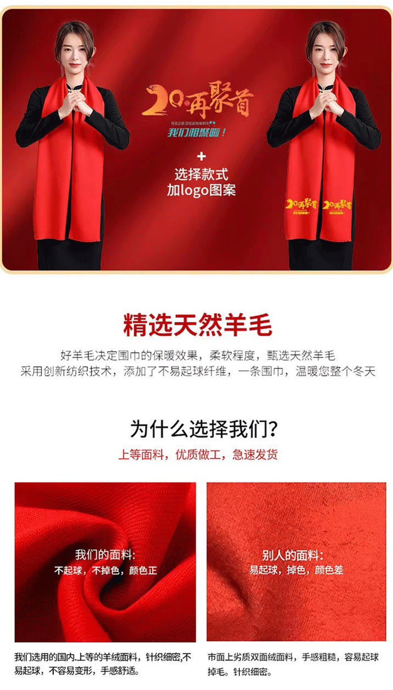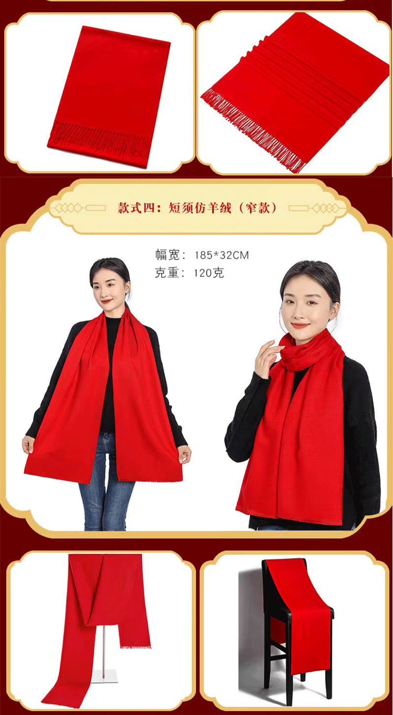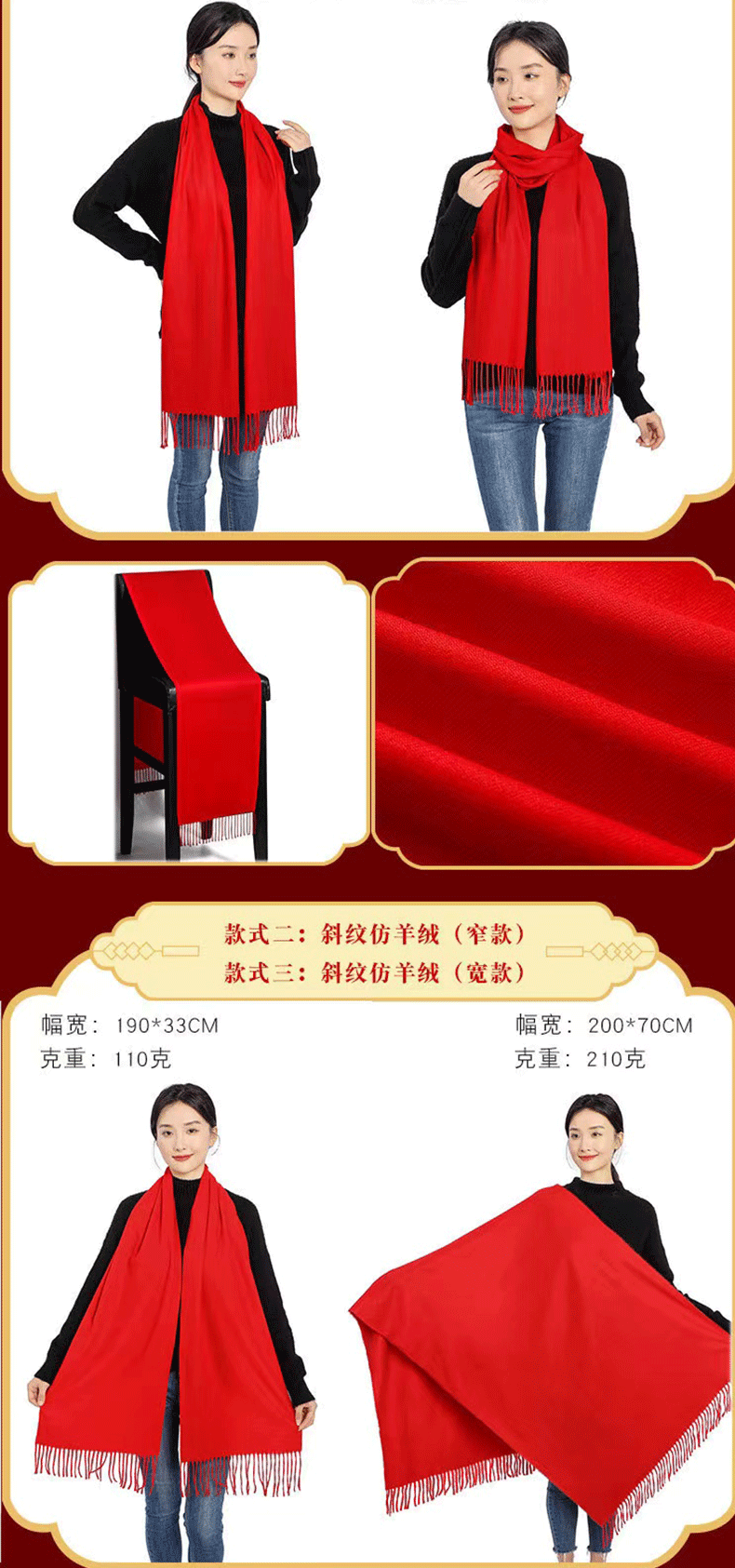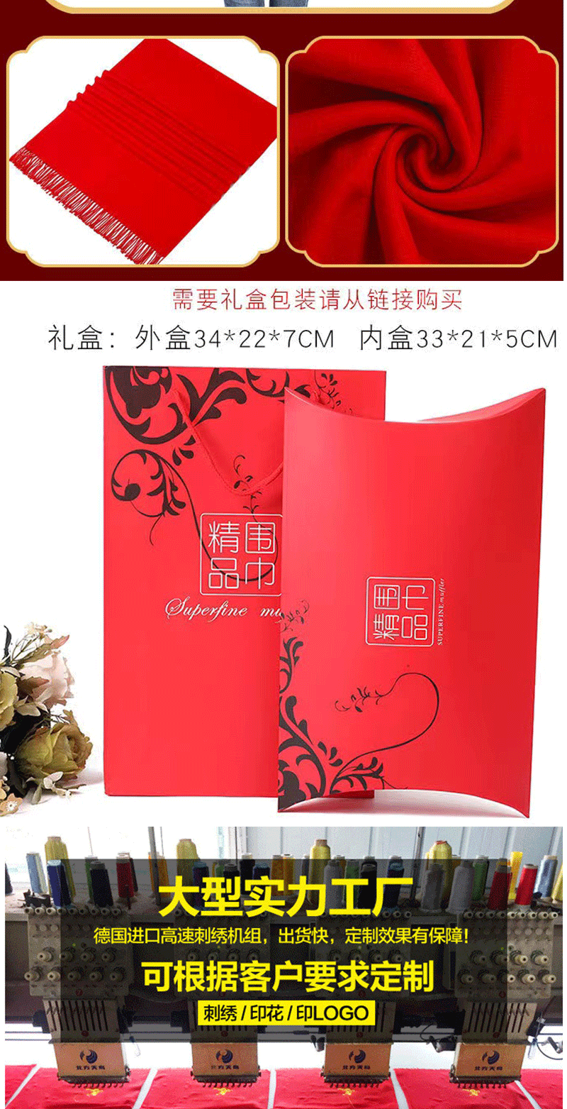 중국 빨간 스카프 로고 자수 가을과 겨울 붉은 연례 회의 캐시미어 선물 목도리 남성 스카프 인쇄 도매스토어 가기