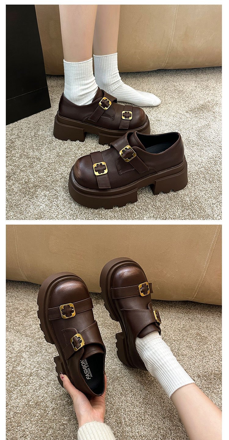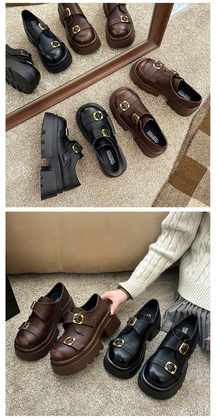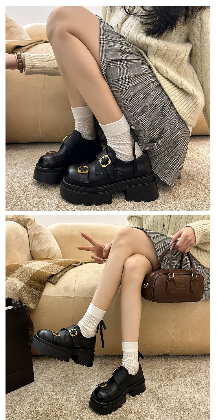 빈티지 블랙 영국 스타일 두꺼운 바닥 작은 가죽 신발 여성의 2024 새로운 가을과 겨울 원피스 올 매치 메리 제인 싱글 신발스토어 가기