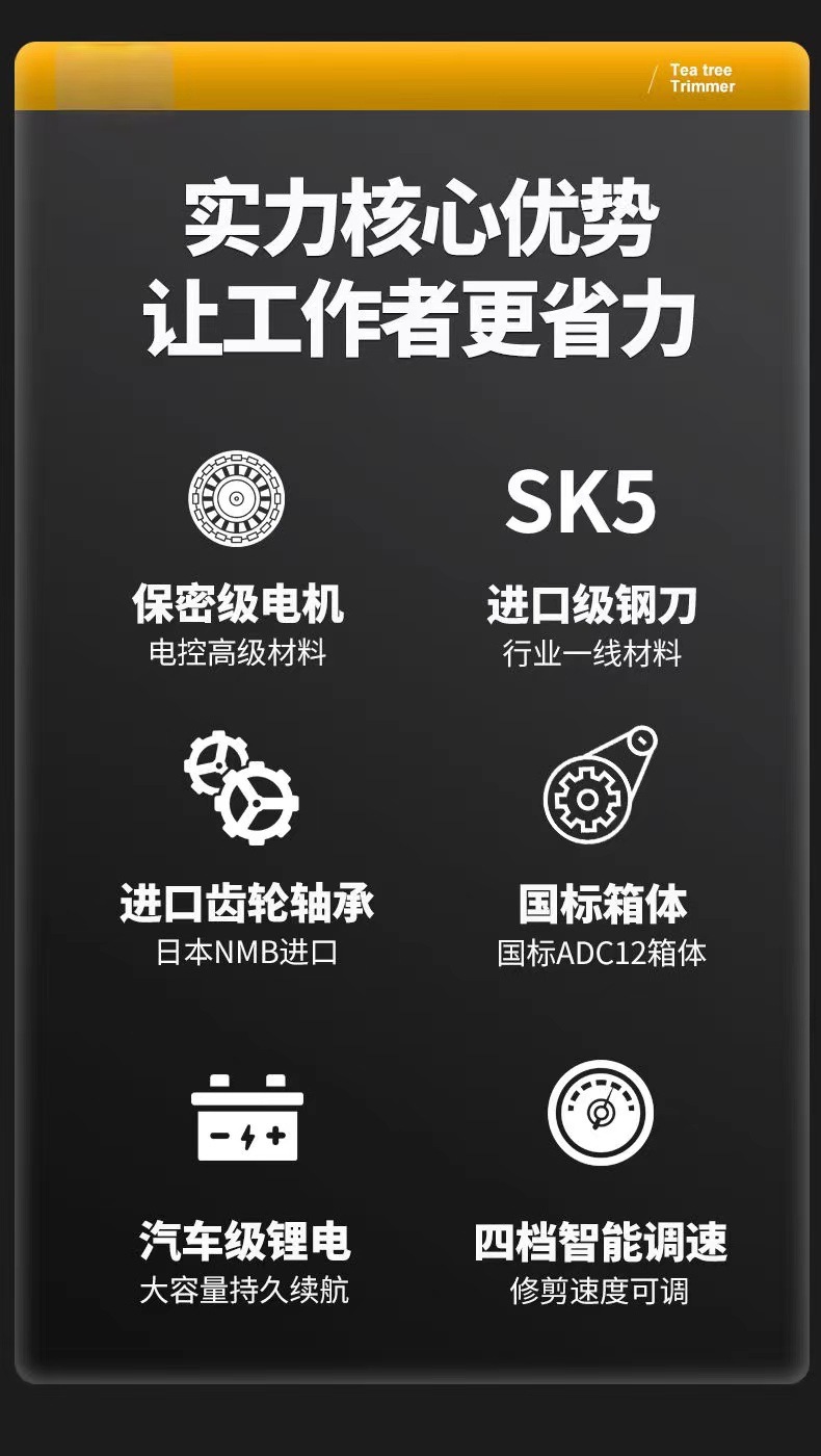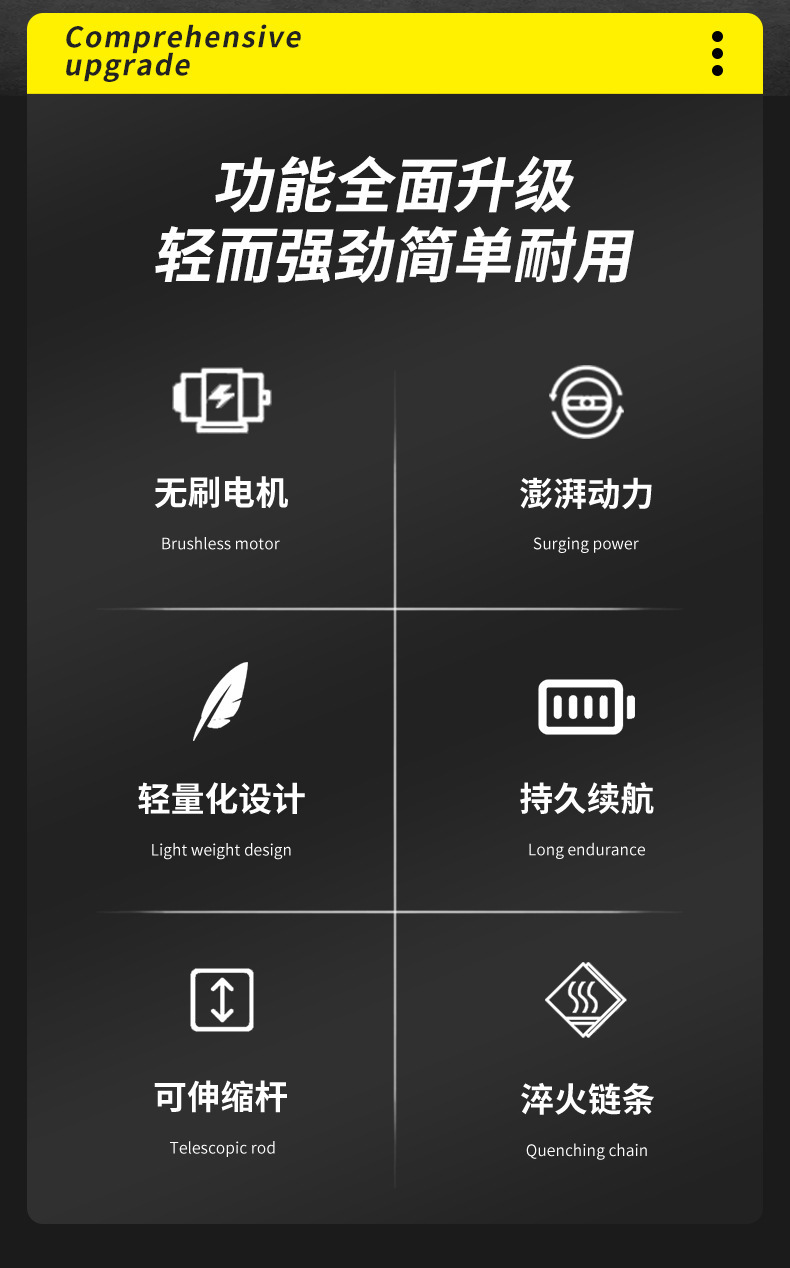 • 21개의 브러시리스 모터, 치밀한 치아, 16개의 치아, 30A 리튬 배터리 [3단 속도 조절]