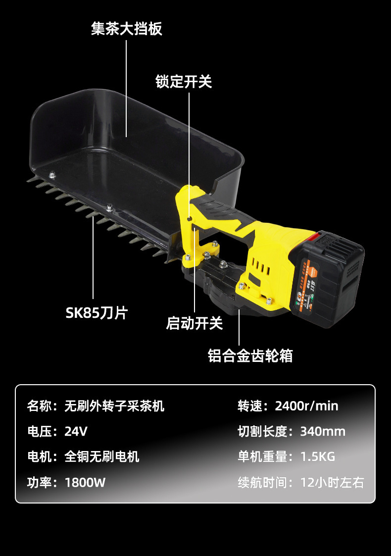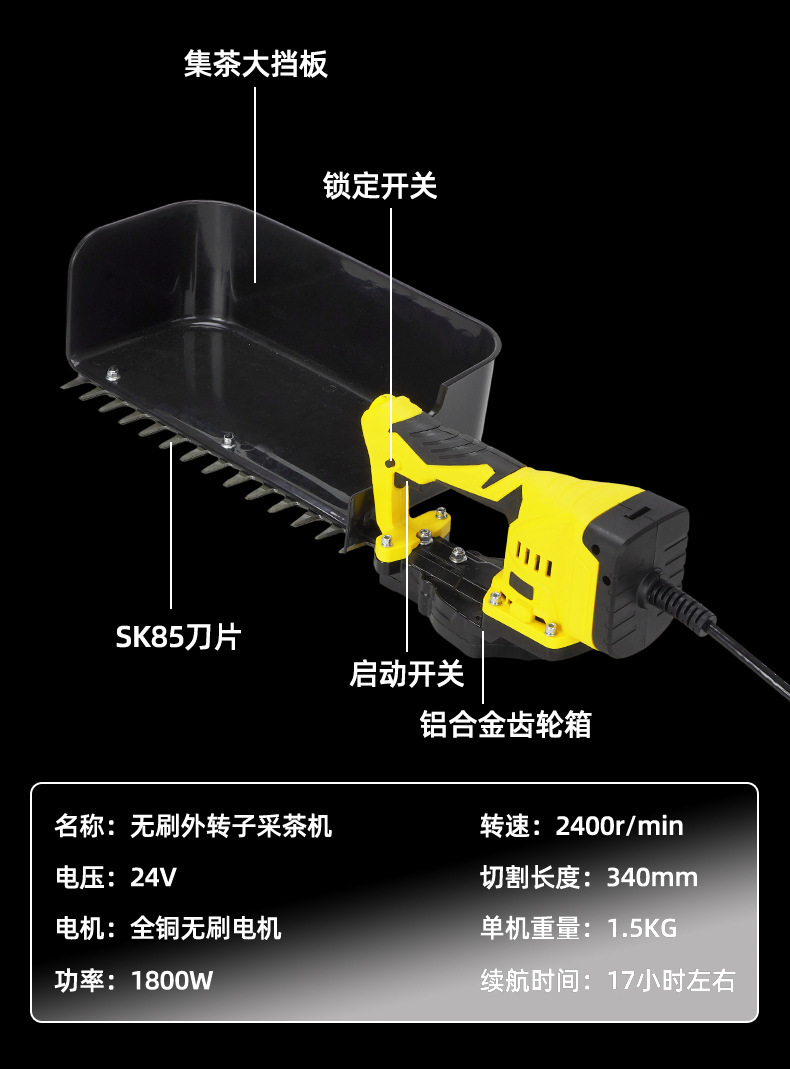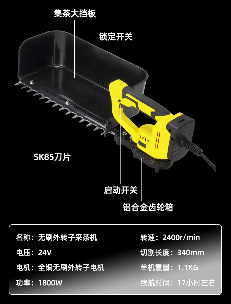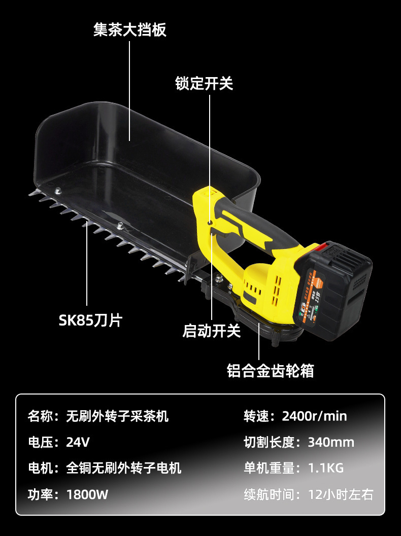 새로운 전기 속도 조절 차 따기 기계 차 나무 차 정원 가지 치기 기계 브러시리스 충전식 단일 손 차 수확 기계