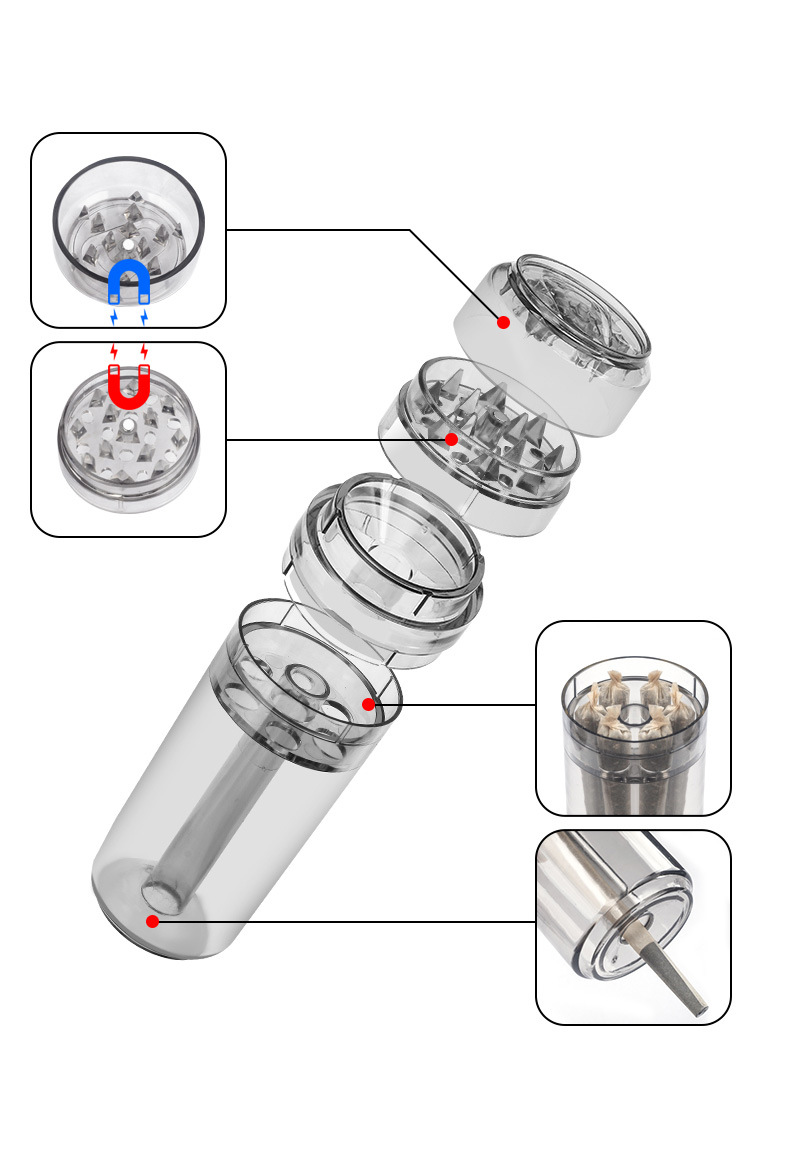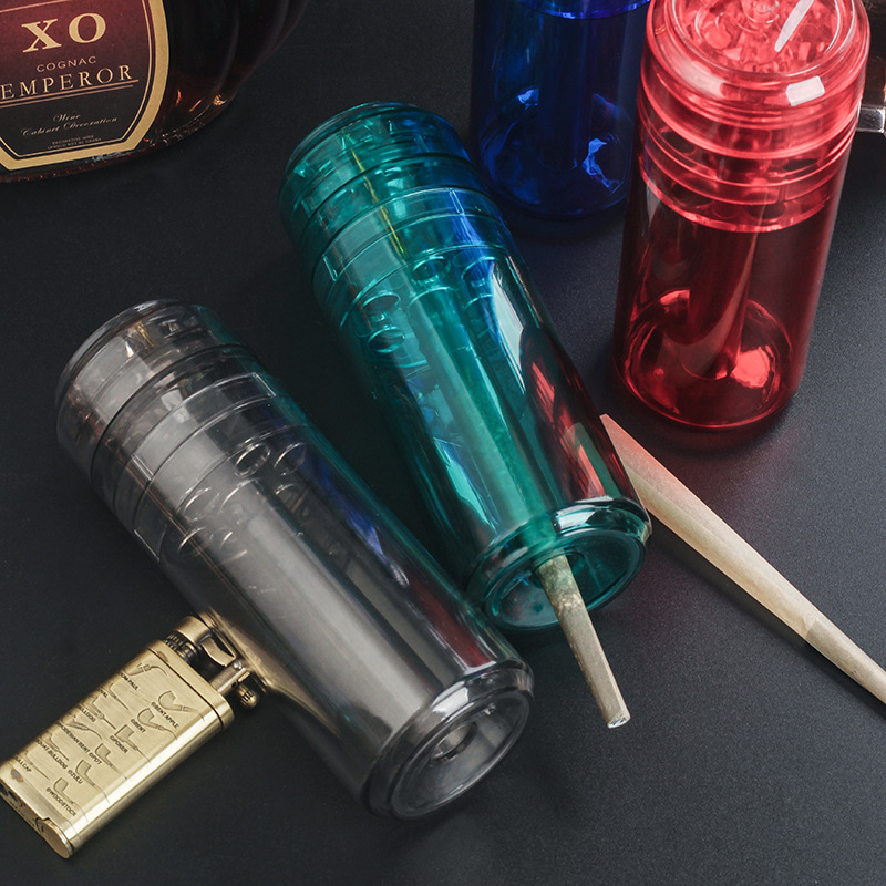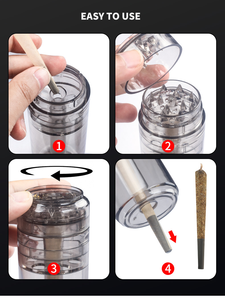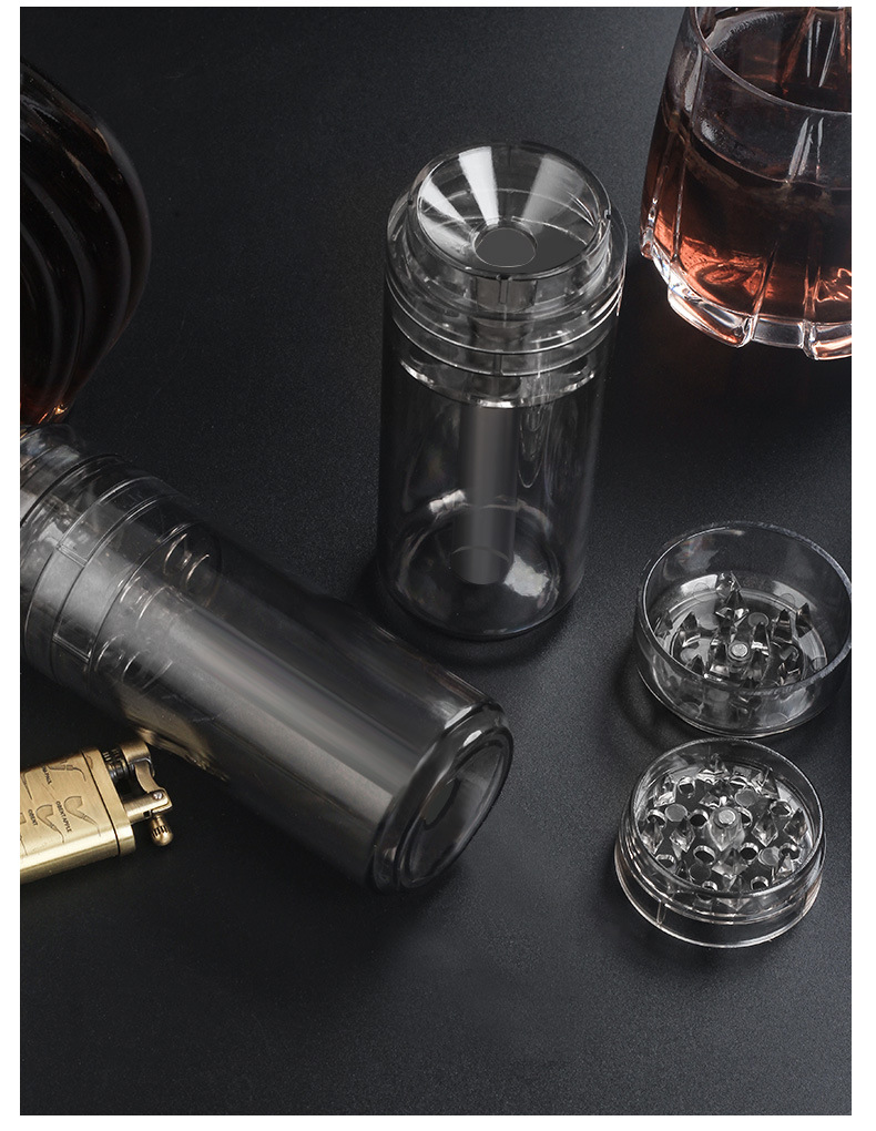 2025 새로운 AliExpress 핫 판매 그라인더 항아리 통합 플라스틱 연기 분쇄기 경적 튜브 담배 분쇄기