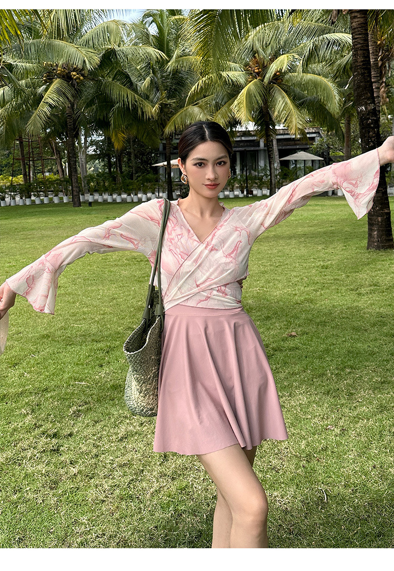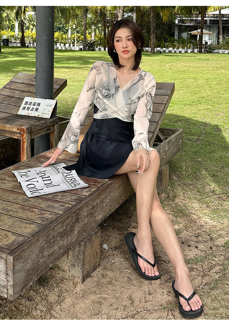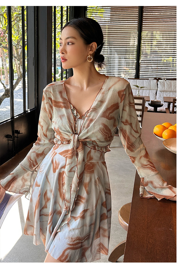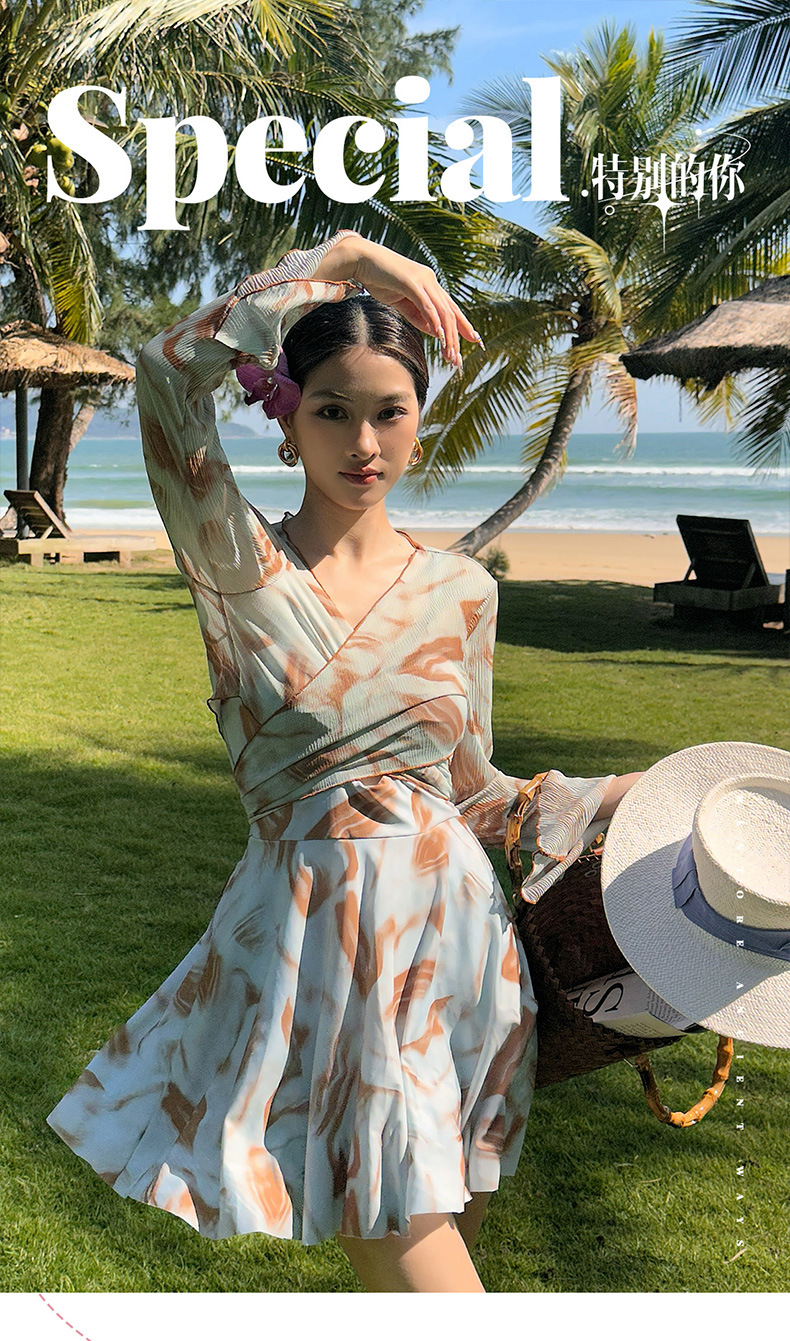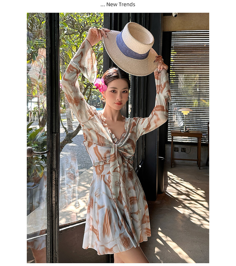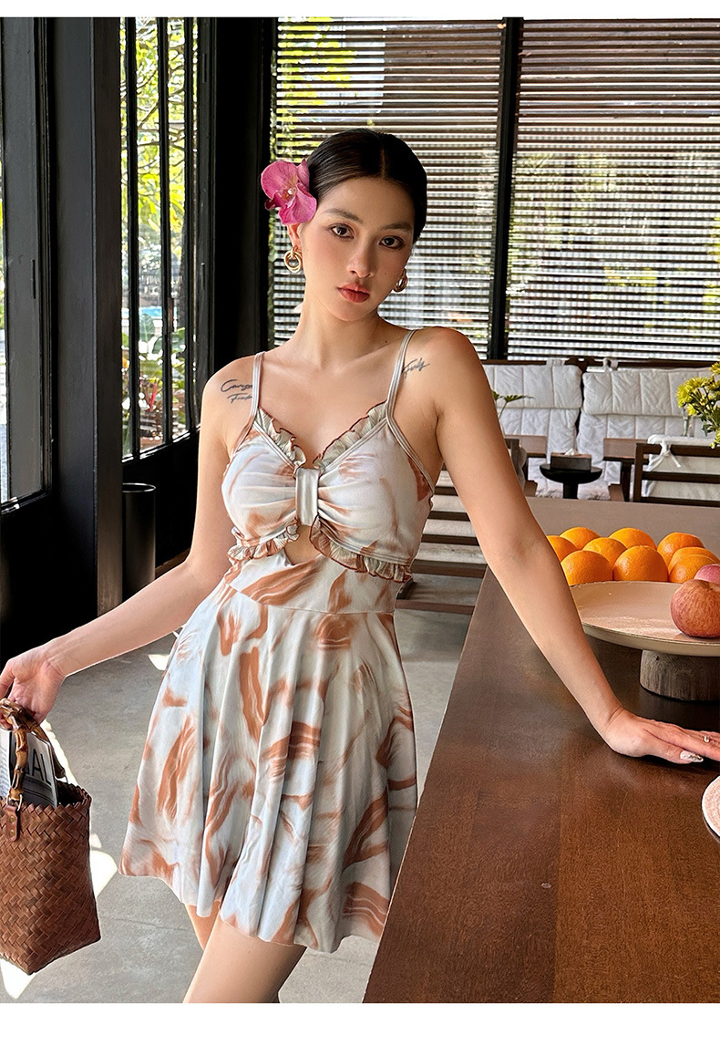 새로운 타이 염색 한 원피스 투피스 온천 수영복 여성의 약간 뚱뚱한 mm200 kg 배꼽으로 덮인 섹시한 슬림 바지 수영복스토어 가기