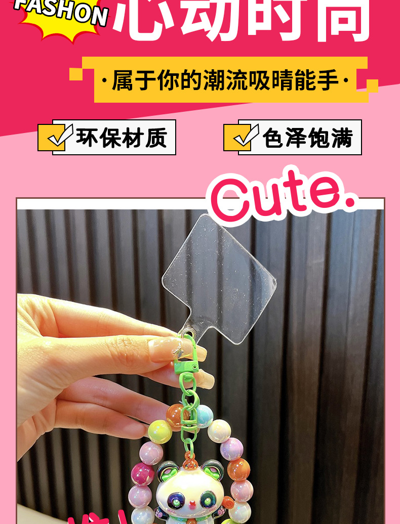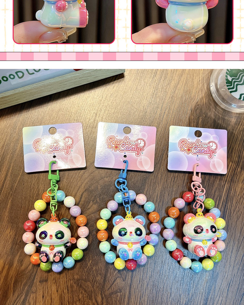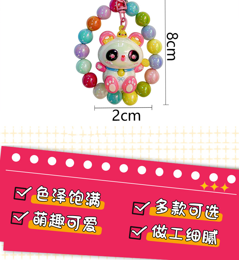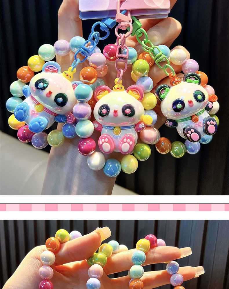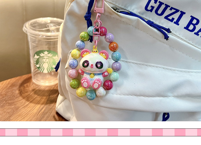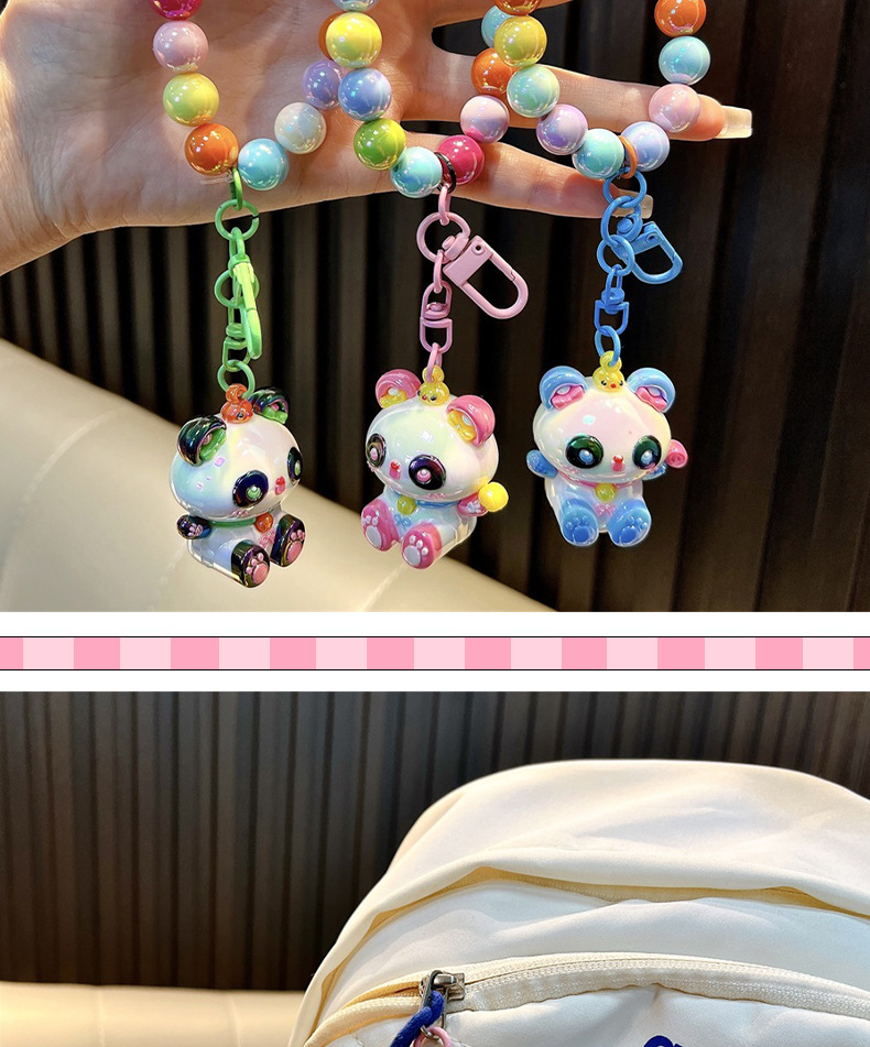 구슬 전기 도금 팬더 키 체인 귀여운 가방 펜던트 컬러 만화 인형 휴대 전화 체인 작은 선물 도매