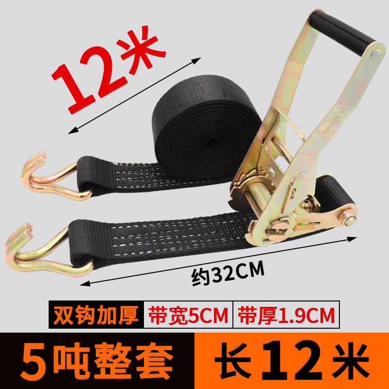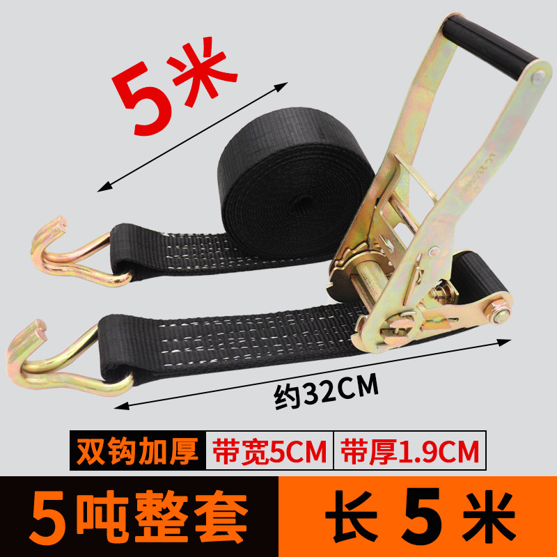 트럭 로프 텐셔너 텐셔너 2 인치 더블 후크 바인딩 벨트 5CM 와이드 블랙 폴리 에스테르 텐셔너