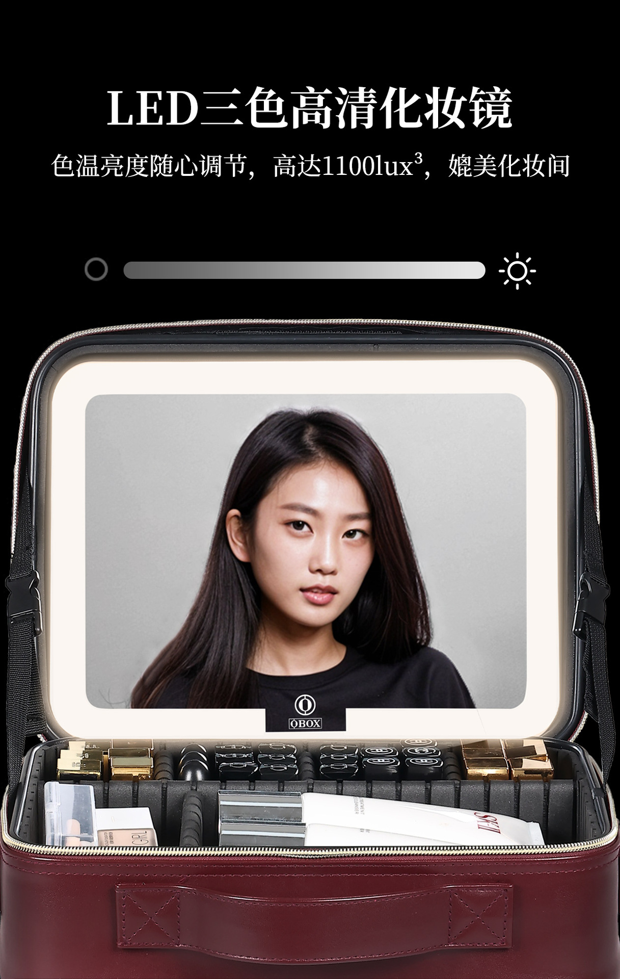 화장품 케이스 대용량 여성 휴대용 2024 거울 10 인치/12 인치 홈 화장품 가방을 가진 새로운 하이 엔드 LED 빛스토어 가기