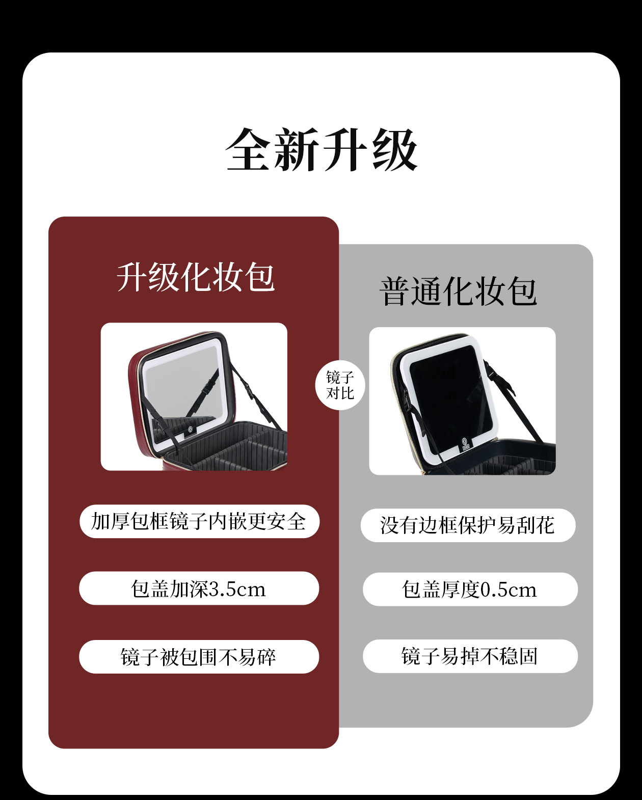 화장품 케이스 대용량 여성 휴대용 2024 거울 10 인치/12 인치 홈 화장품 가방을 가진 새로운 하이 엔드 LED 빛