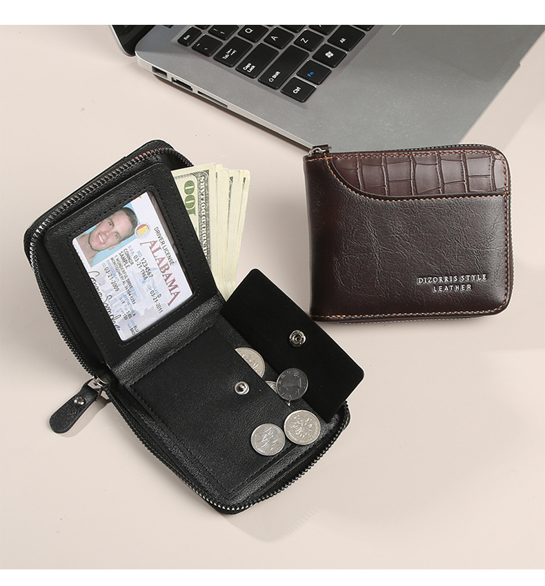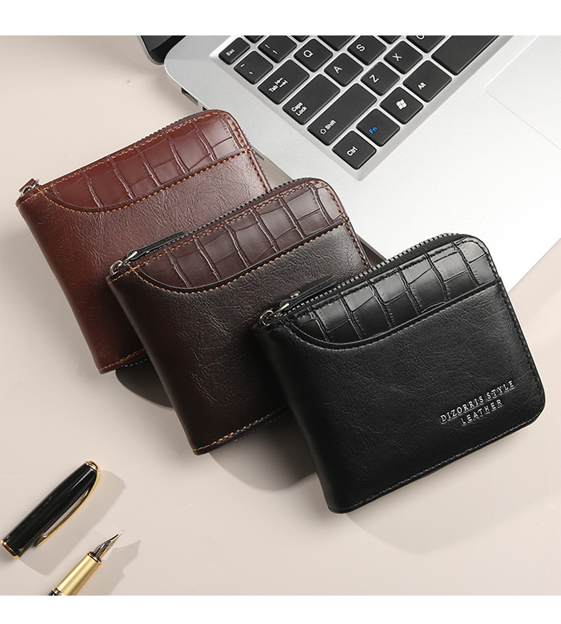 국경 간 남자의 짧은 지갑 바느질 돌 패턴 대용량 3 배 가방 지퍼 동전 지갑 유행 멀티 카드 지갑스토어 가기