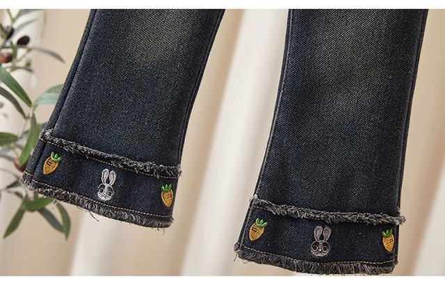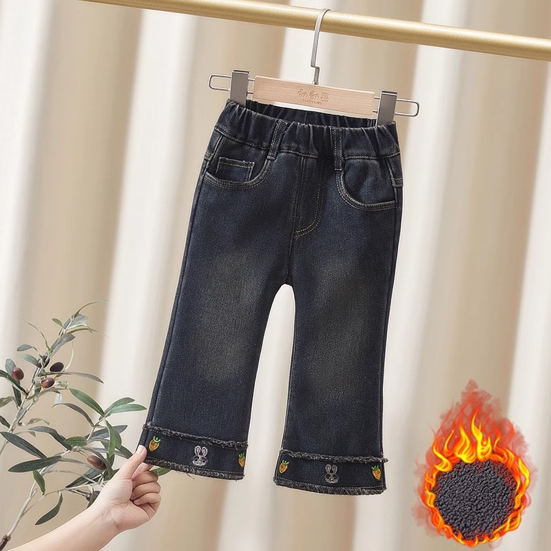 아동복 여아용 기모 데님 팬츠 2024 가을 겨울 유아동 바지 두꺼운 일체형 기모 나팔바지 트렌디 브랜드