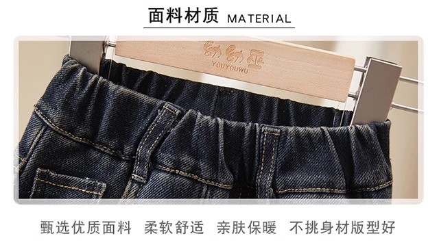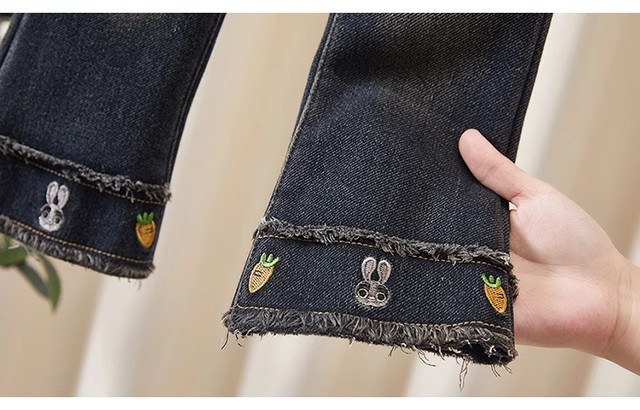 아동복 여아용 기모 데님 팬츠 2024 가을 겨울 유아동 바지 두꺼운 일체형 기모 나팔바지 트렌디 브랜드스토어 가기
