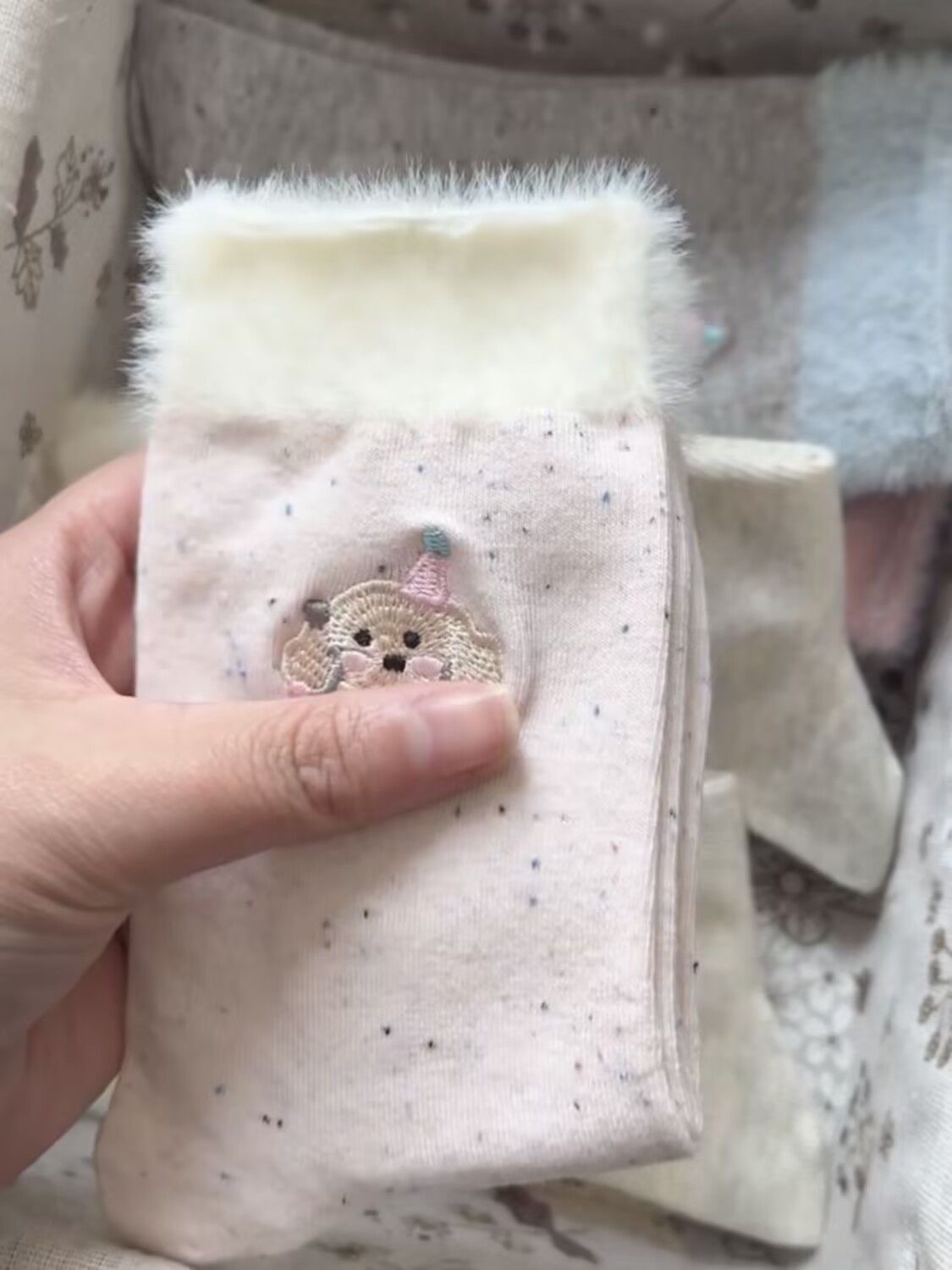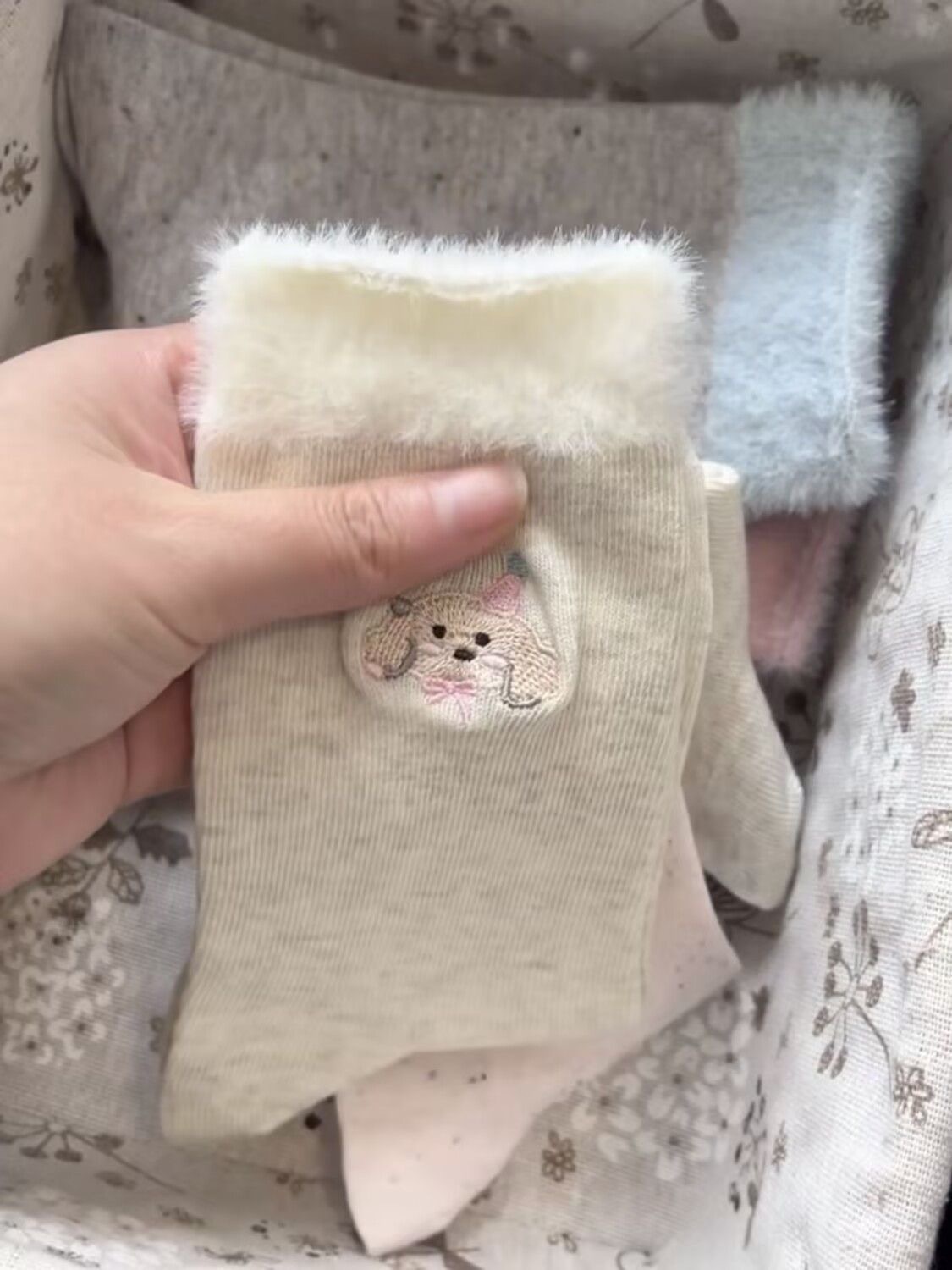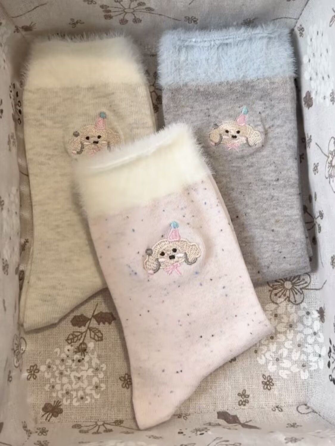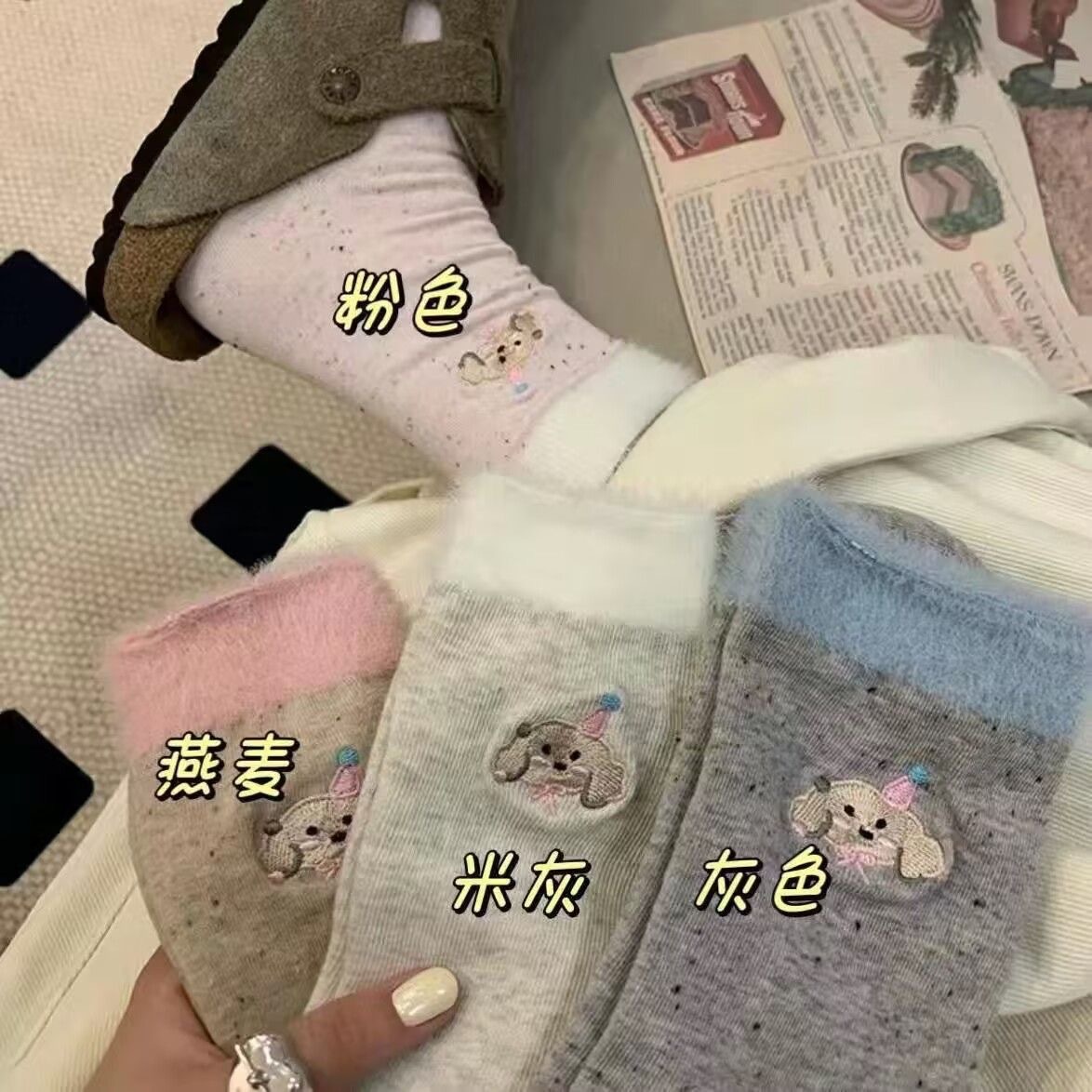 겨울 새로운 Ins 트렌디 한 봉제 가장자리 양말 여성 바느질 만화 귀여운 강아지 중간 배럴 독특한 패션 문 양말스토어 가기