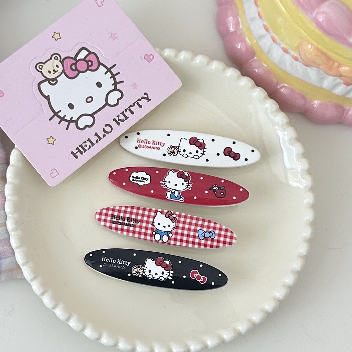 4 롱 타원형 KT 롱 사이드 클립 귀여운 소녀의 마음 달콤한 만화 덕빌 클립 체크 헬로 키티 뱅 사이드 클립스토어 가기