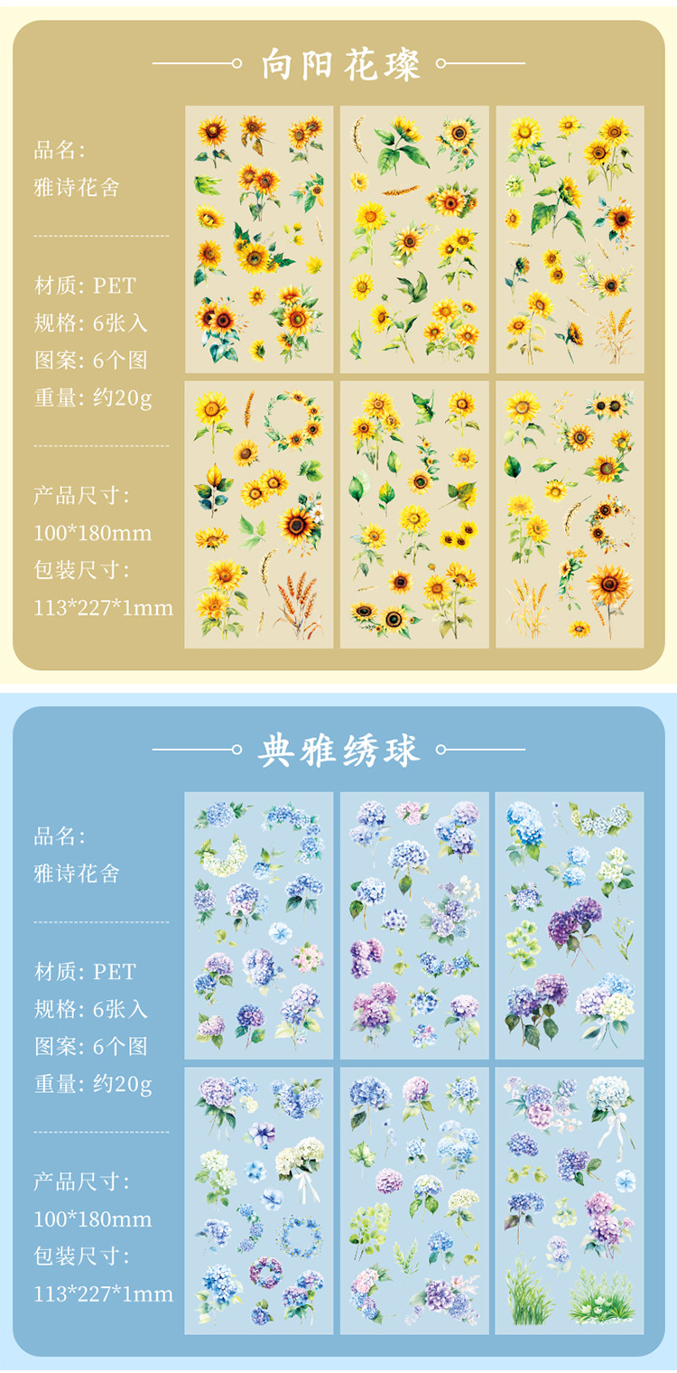 Yuezhen Yashi 꽃 집 컷 필름 스티커 손 계정 스티커 국경 간 복고풍 방수 애완 동물 스티커 꽃 손 계정 스티커