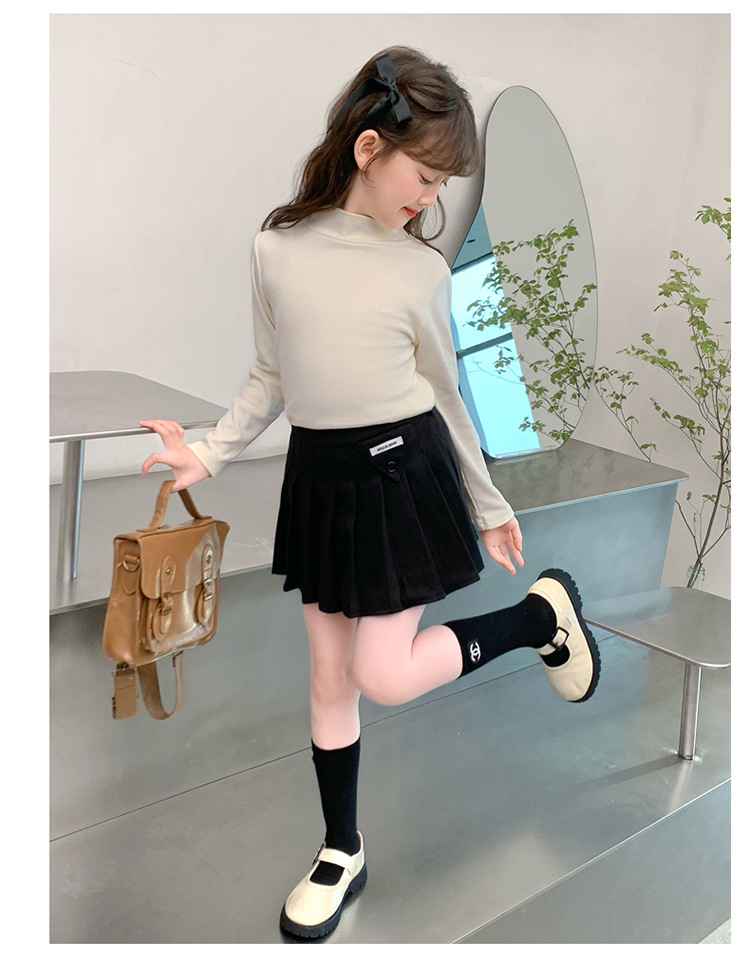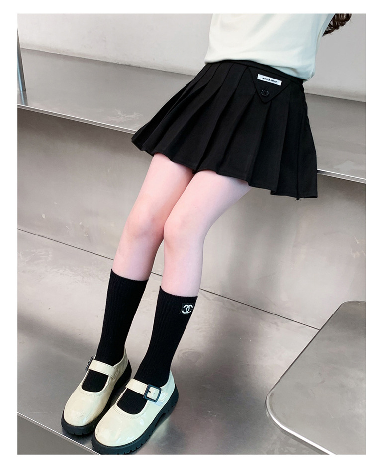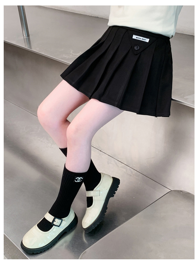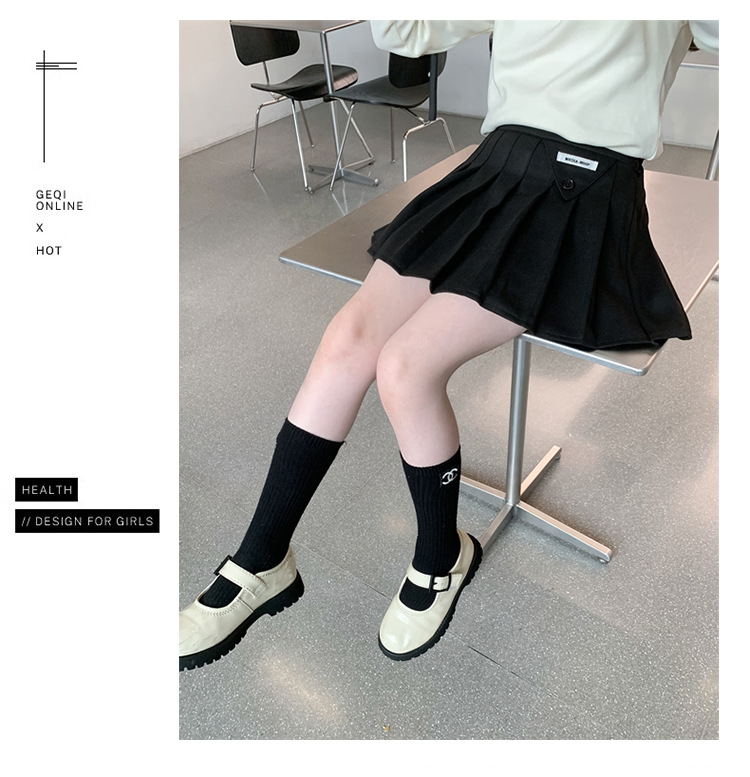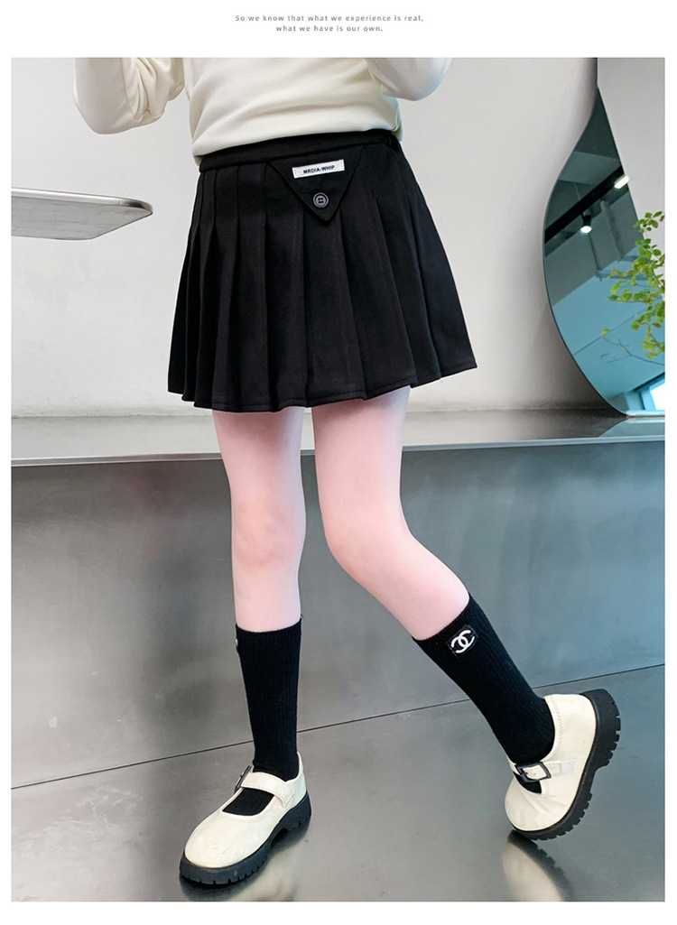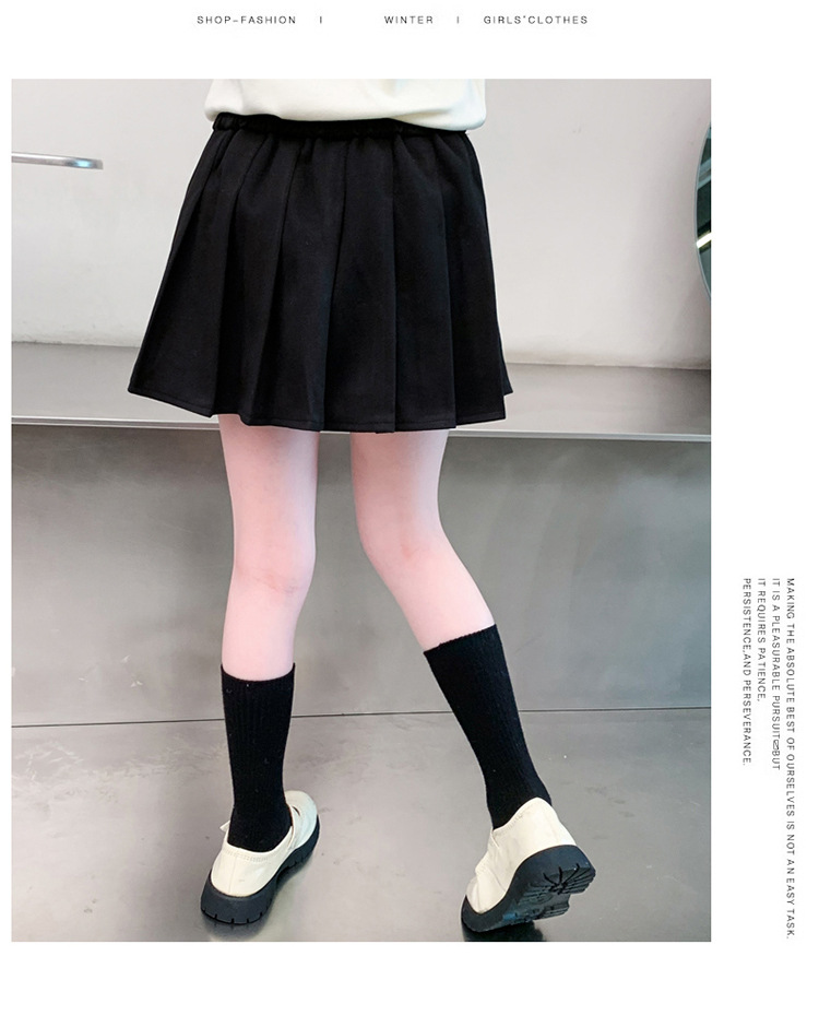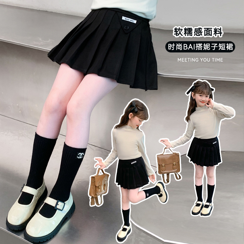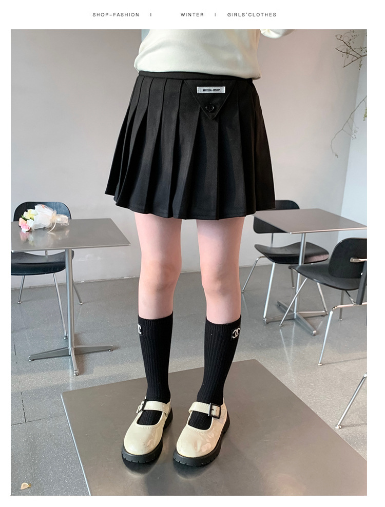 여자 모직 짧은 치마 블랙 JK 주름 치마 여자 초등학교 어린이 치마 2024 가을과 겨울 원피스